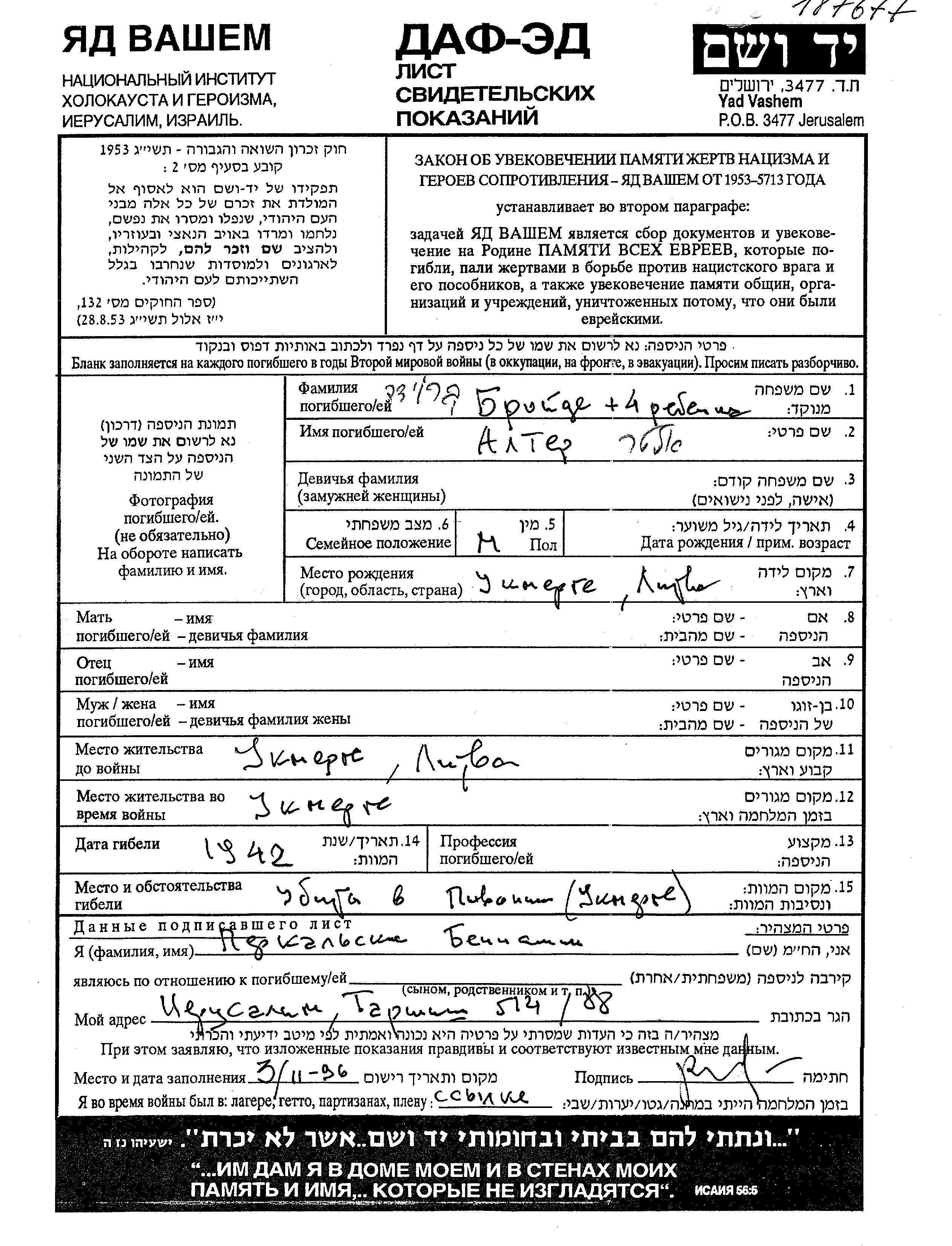 Yad Vashem - Pages of Testimony Names Memorial Collection