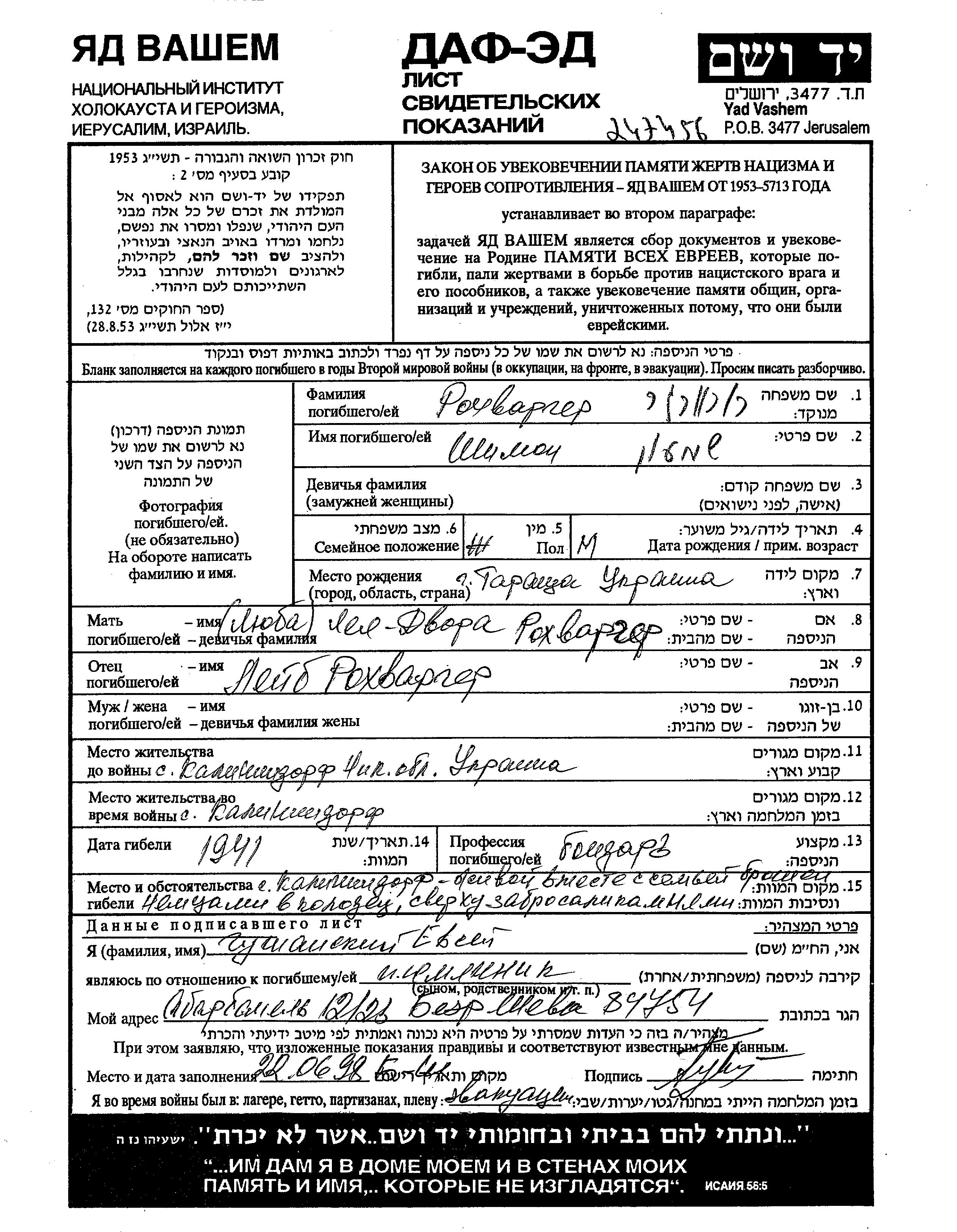 Yad Vashem - Pages of Testimony Names Memorial Collection