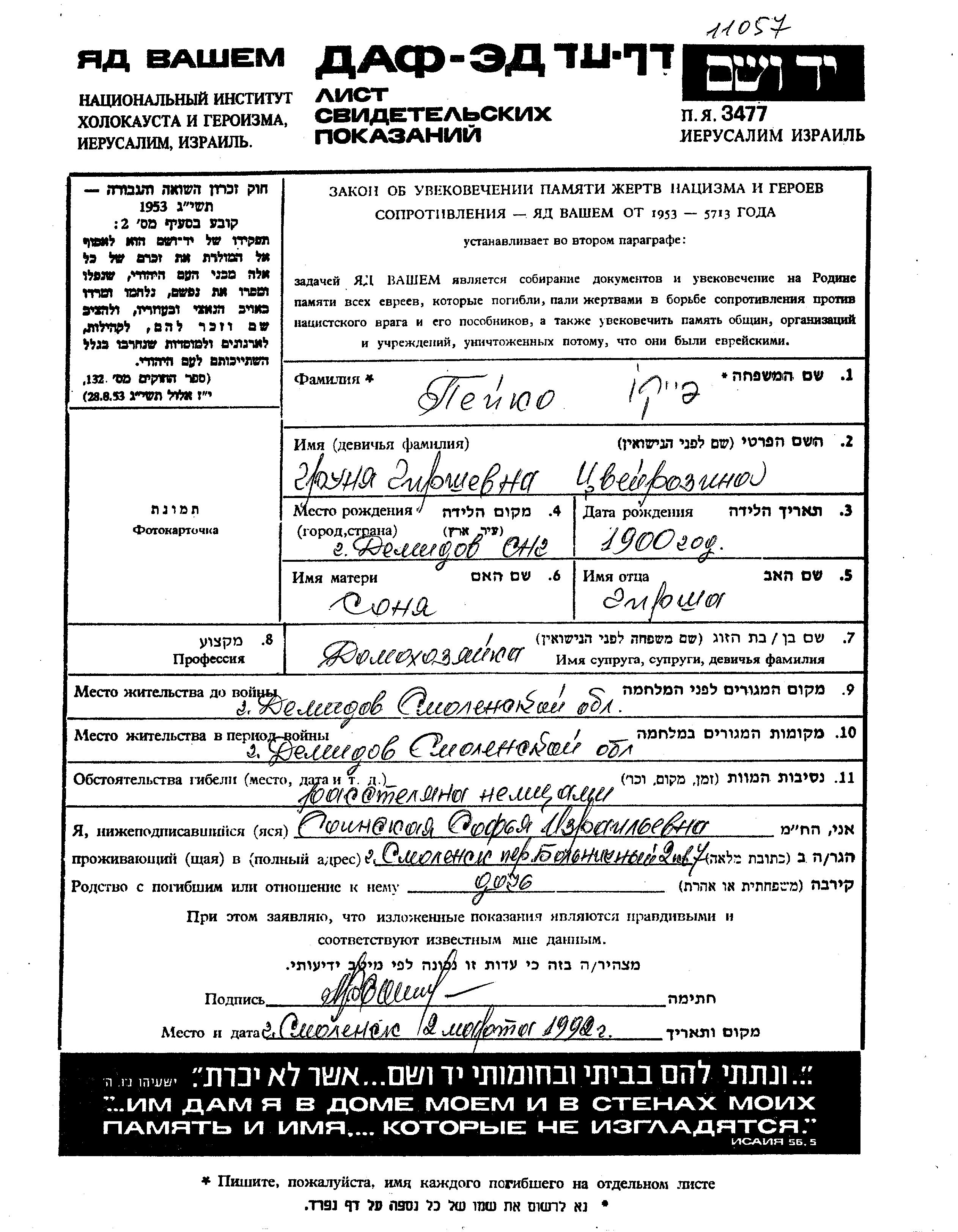 Yad Vashem - Pages of Testimony Names Memorial Collection