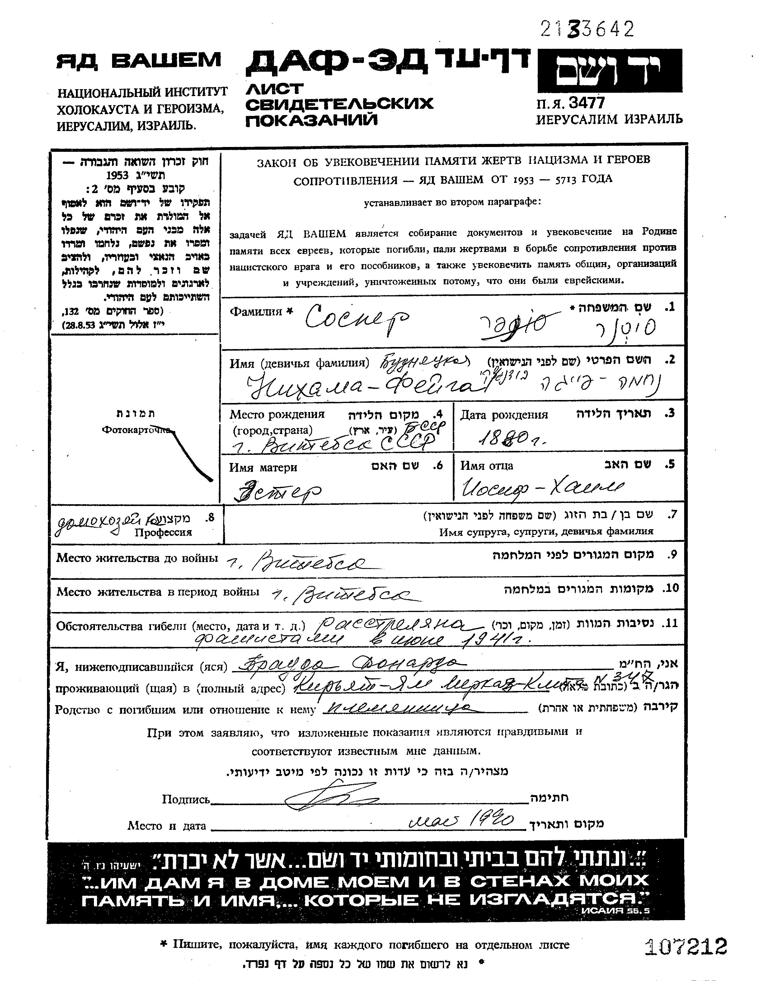 Yad Vashem - Pages of Testimony Names Memorial Collection