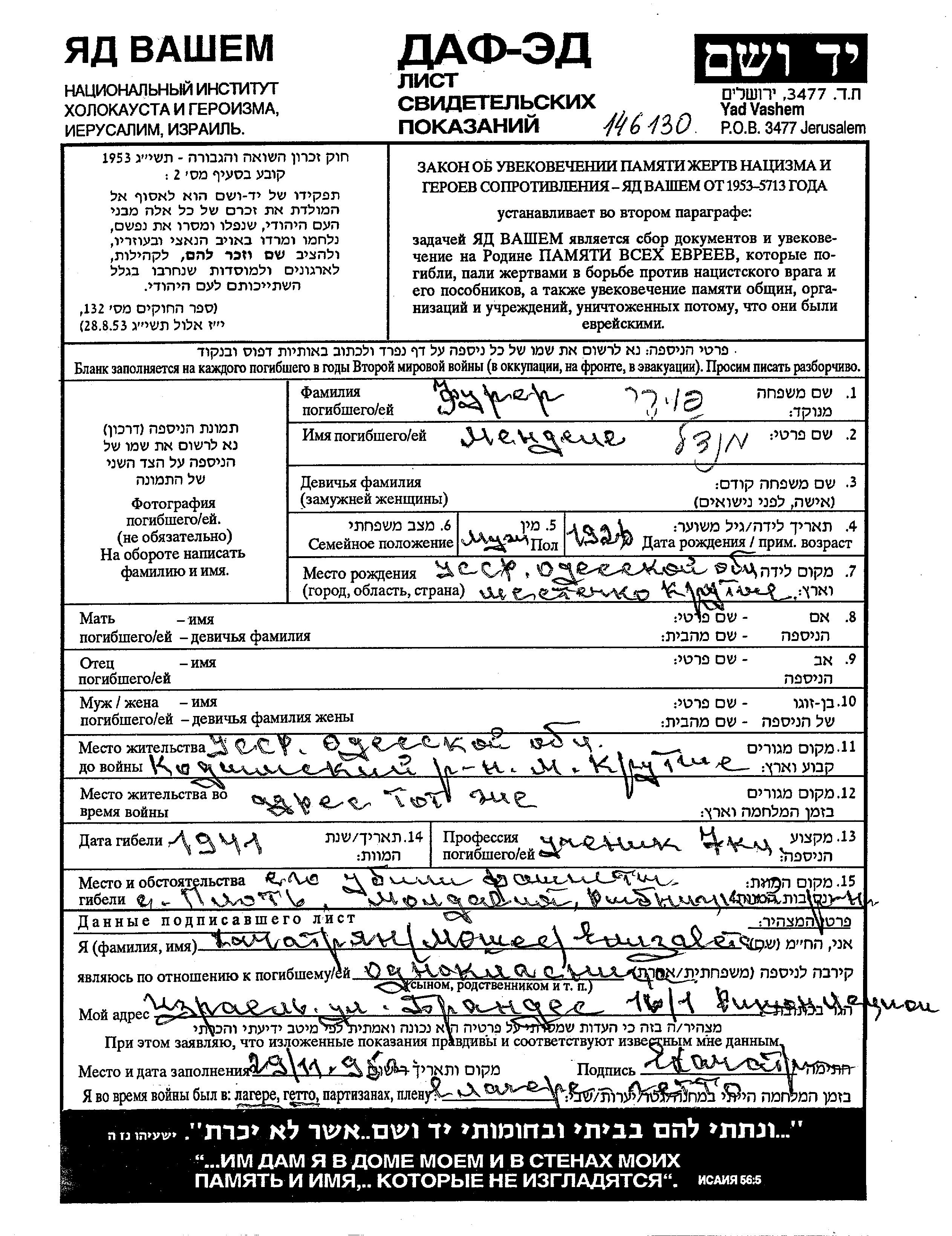 Yad Vashem - Pages of Testimony Names Memorial Collection