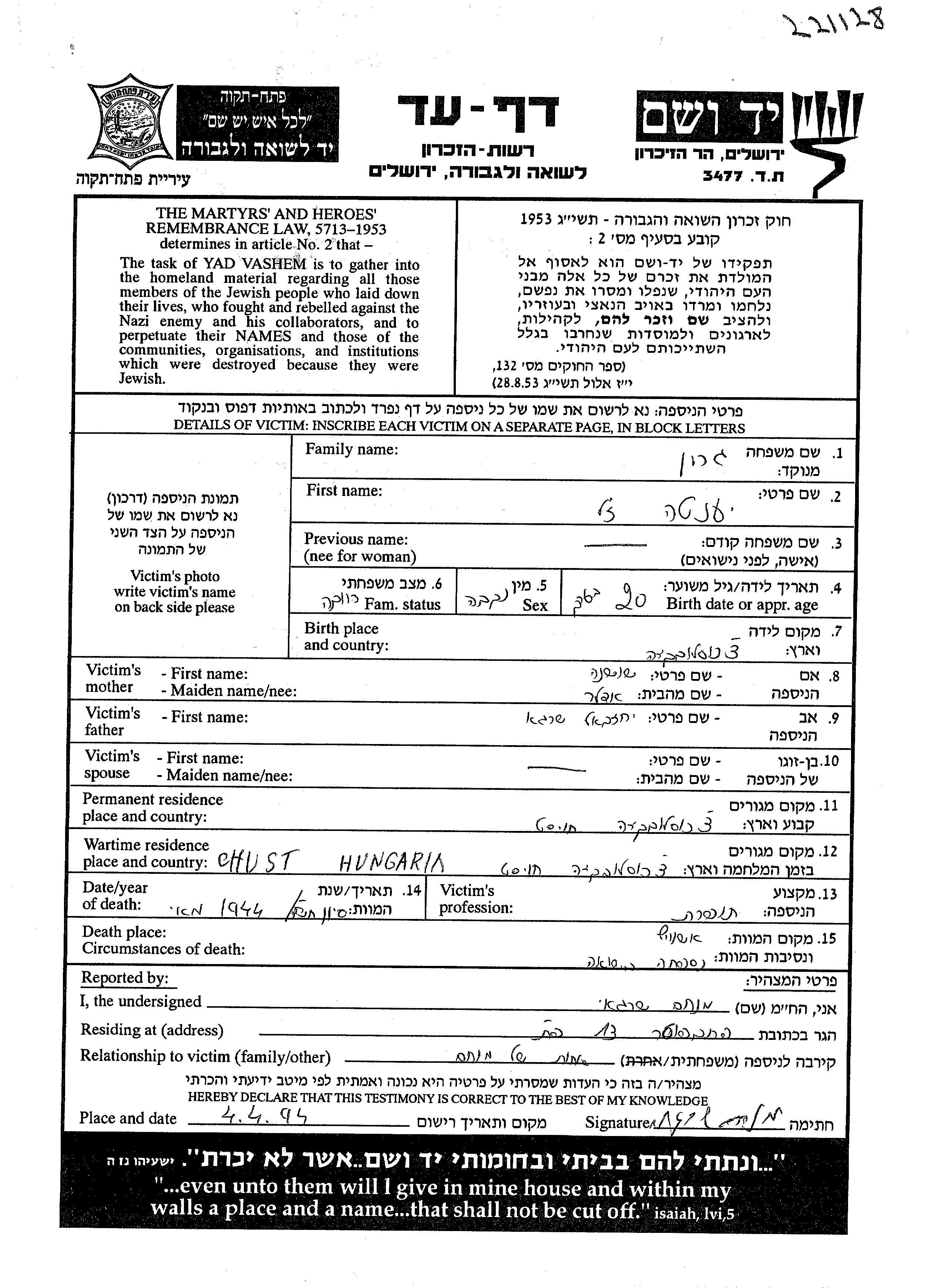 Yad Vashem - Pages of Testimony Names Memorial Collection