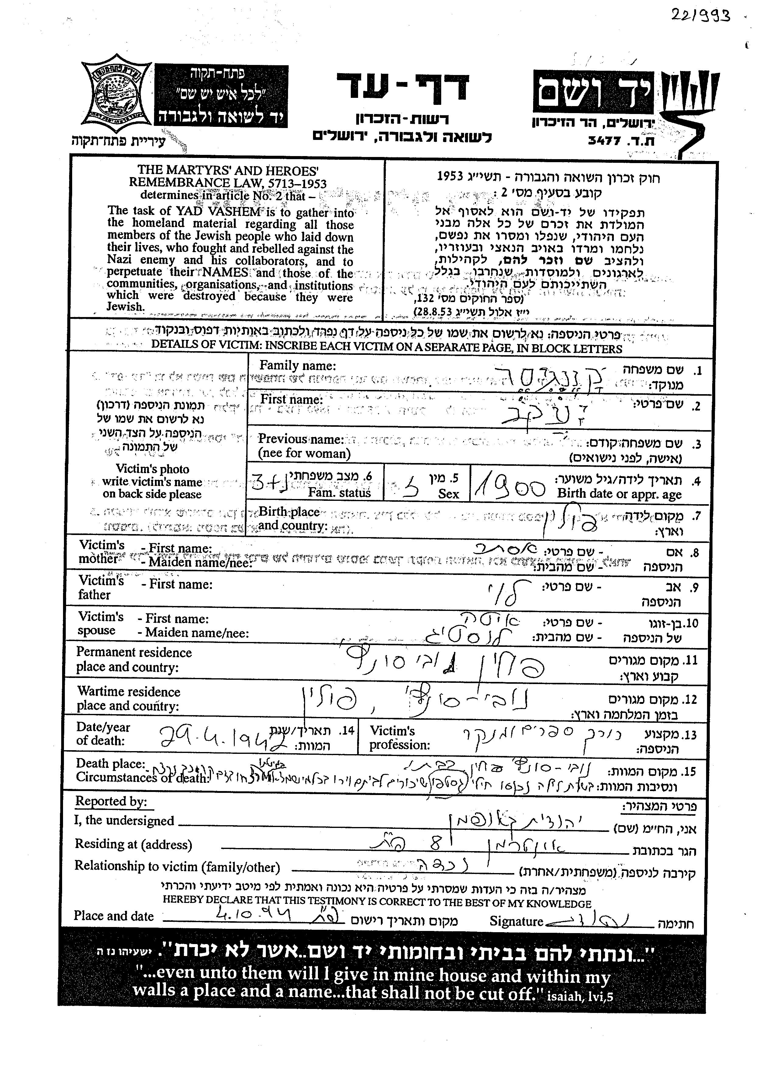 Yad Vashem - Pages of Testimony Names Memorial Collection