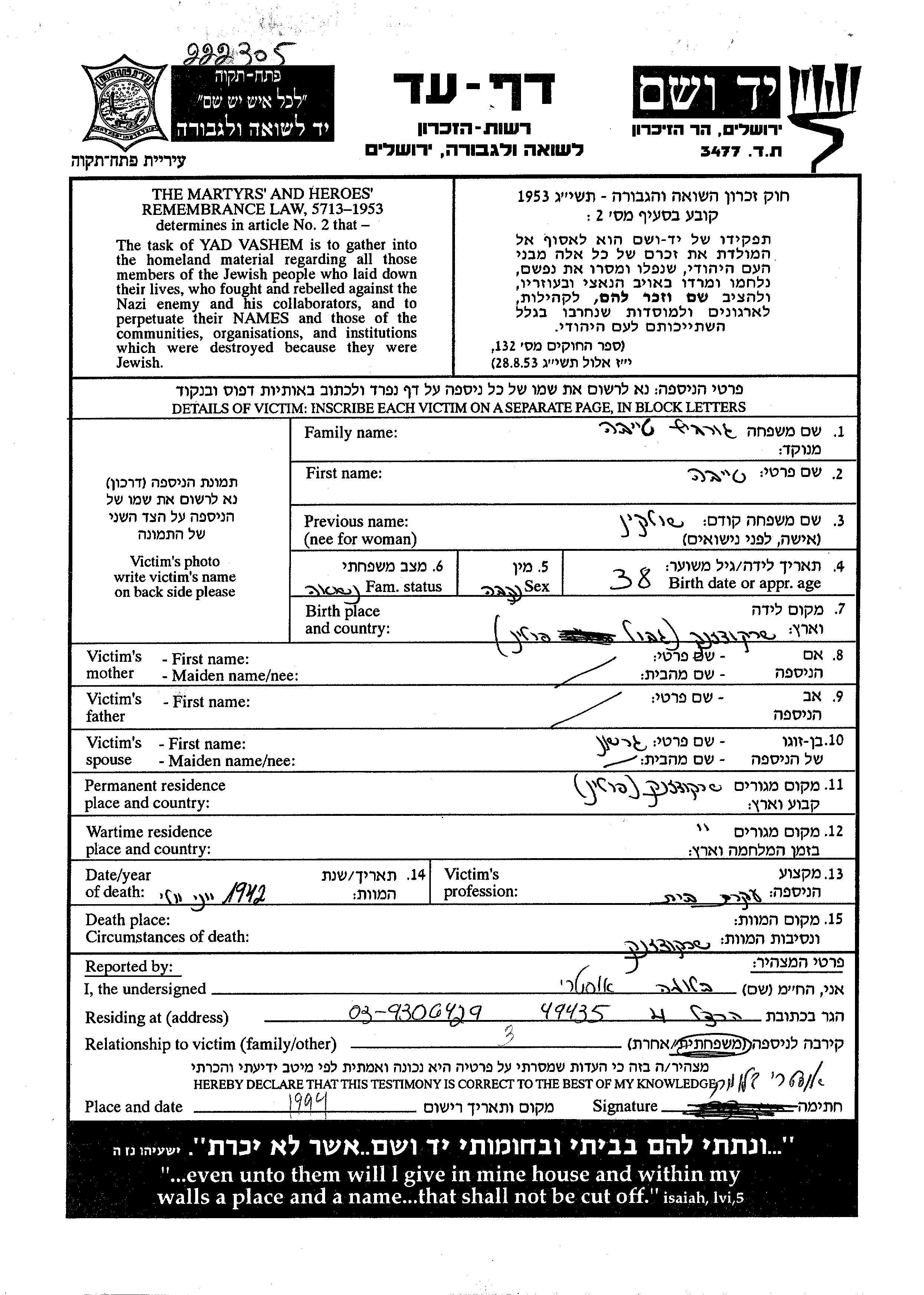Yad Vashem - Pages of Testimony Names Memorial Collection
