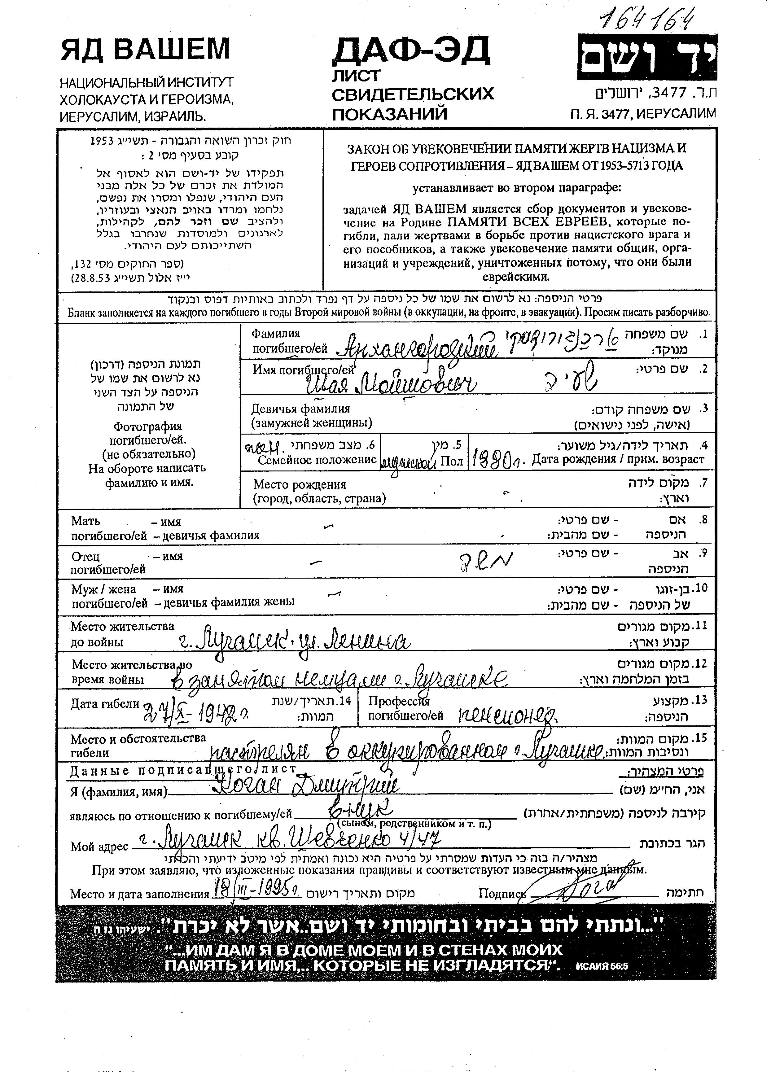 Yad Vashem - Pages of Testimony Names Memorial Collection