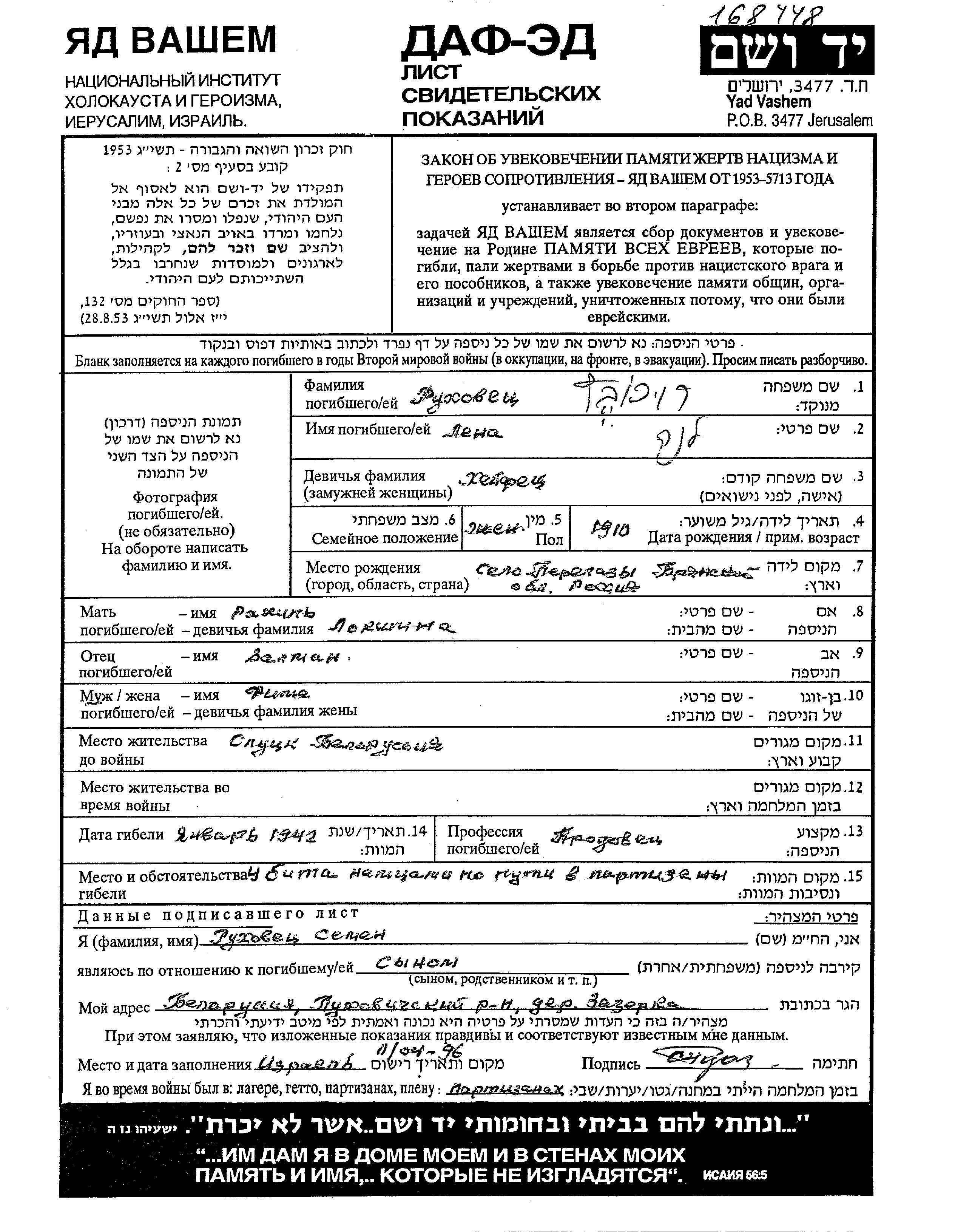 Yad Vashem - Pages of Testimony Names Memorial Collection