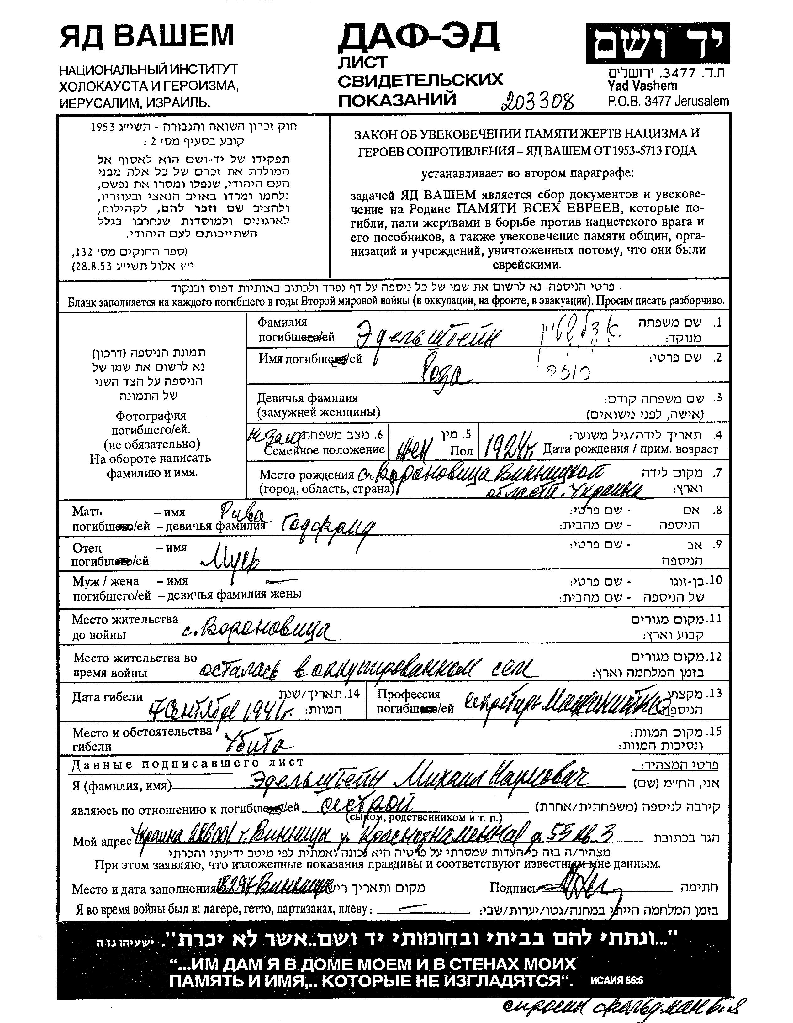 Yad Vashem - Pages of Testimony Names Memorial Collection