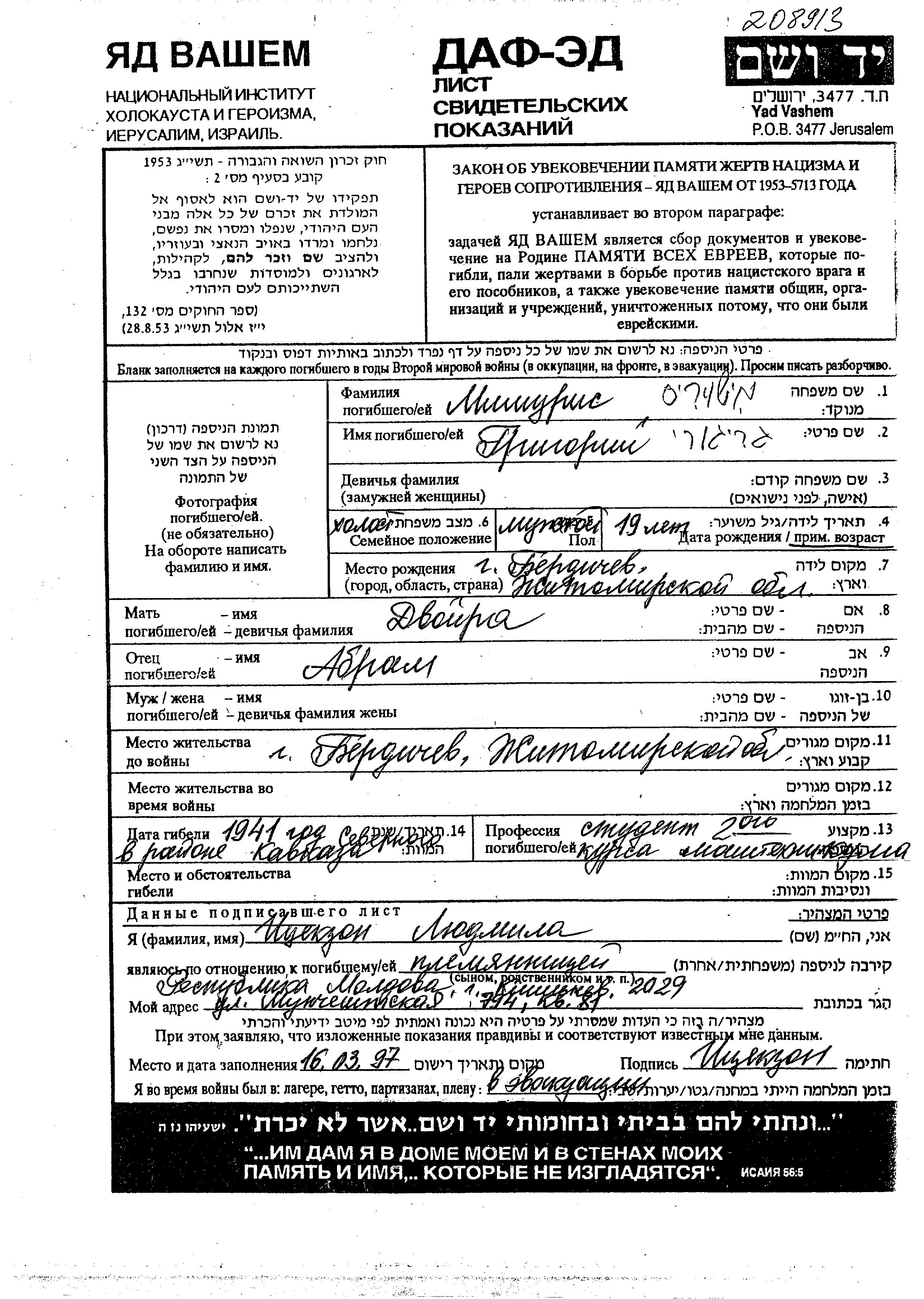 Recherche par nom du dépositeur de la Feuille de témoignage. Cette recherché indique aussi les noms de jeunes filles.