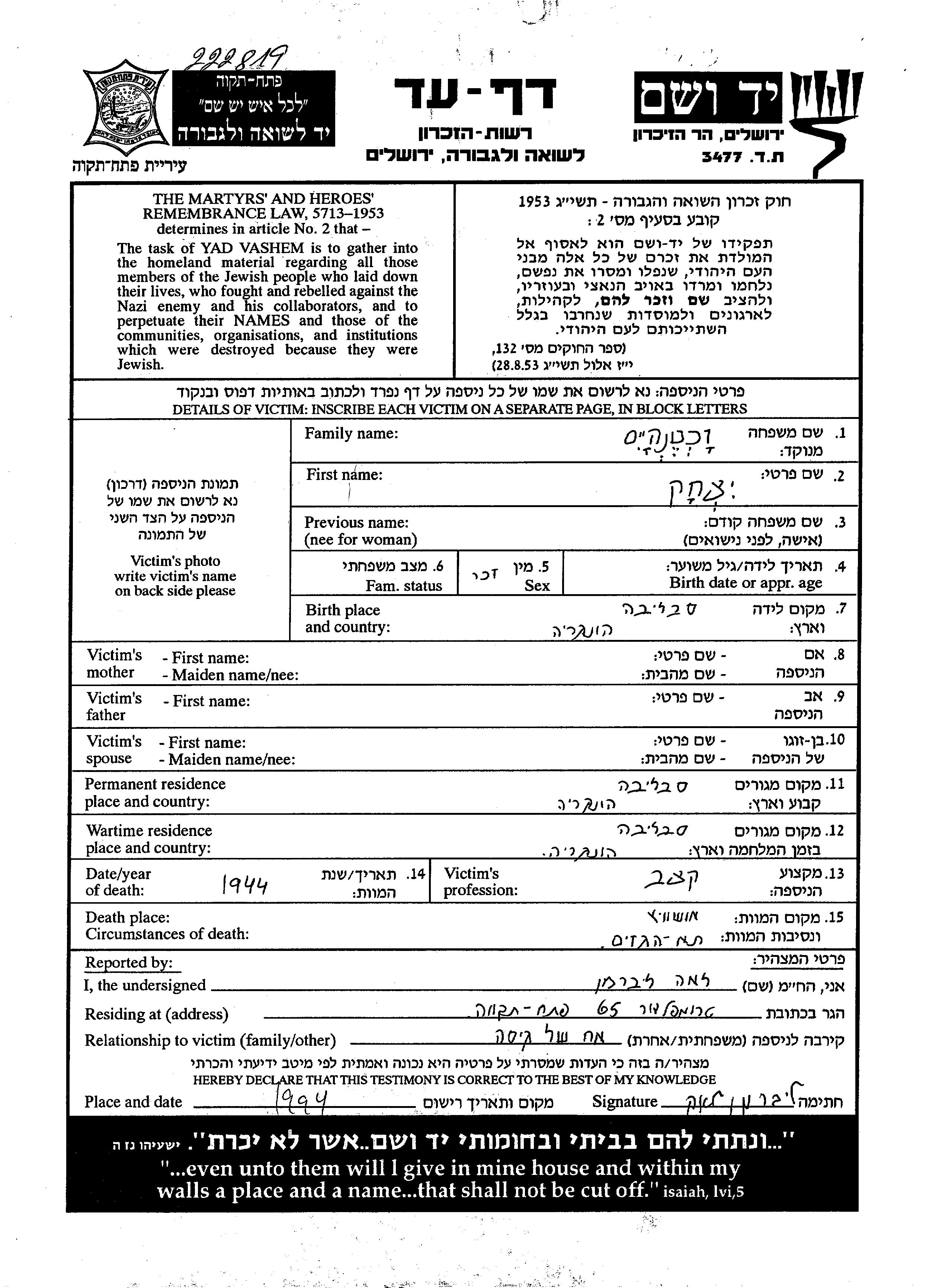 Yad Vashem - Pages of Testimony Names Memorial Collection