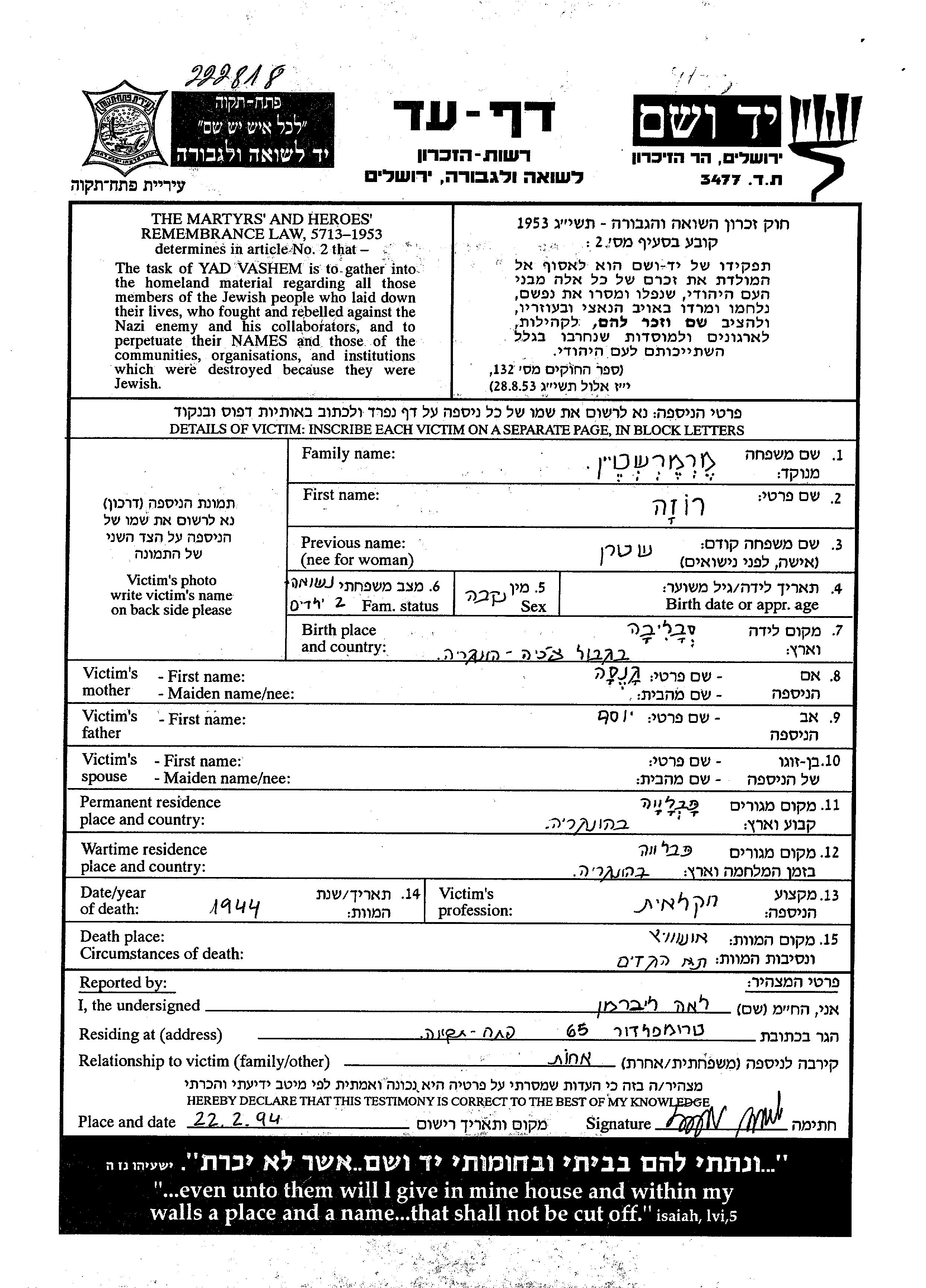 Yad Vashem - Pages of Testimony Names Memorial Collection