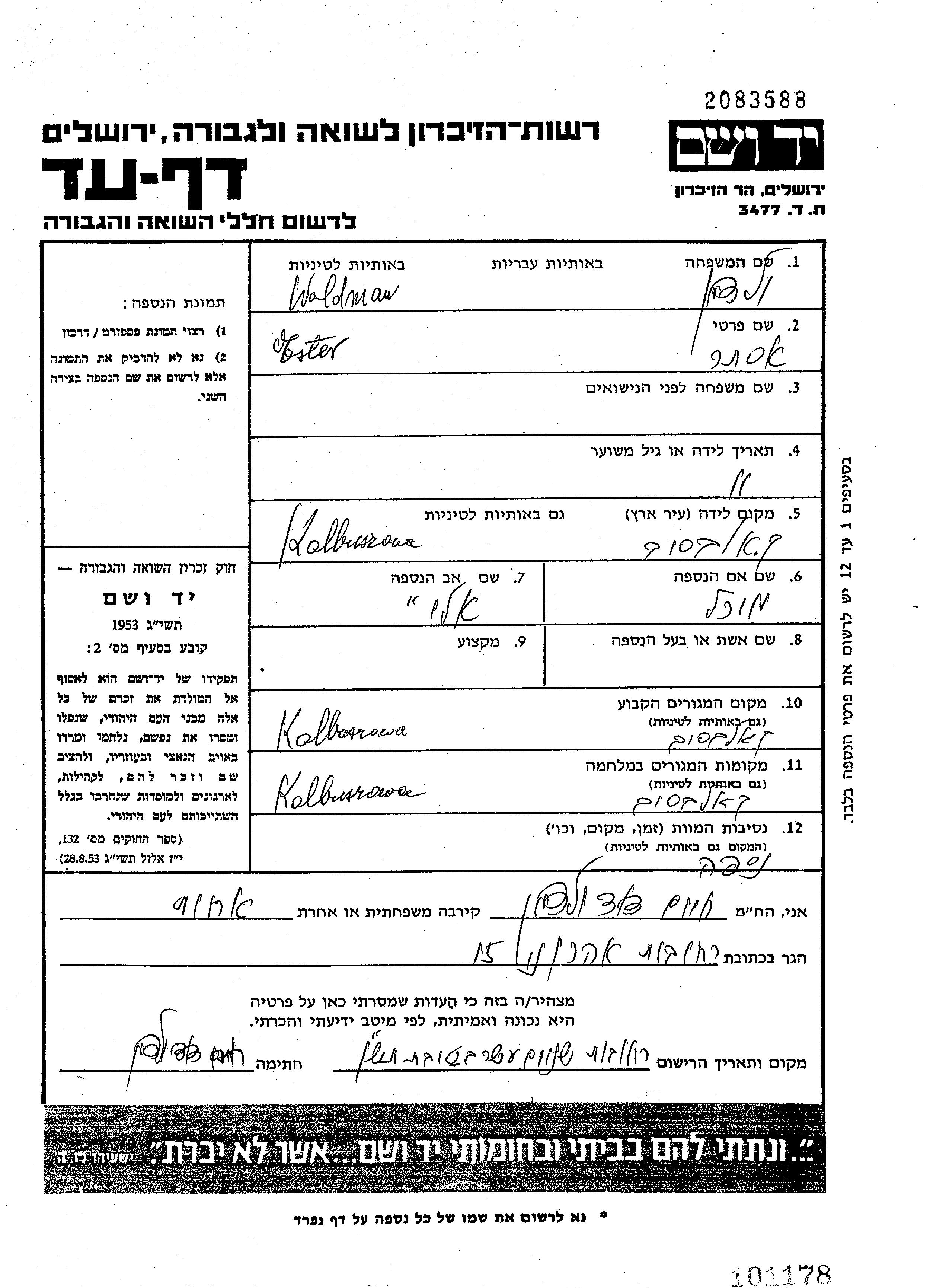 Yad Vashem - Pages of Testimony Names Memorial Collection