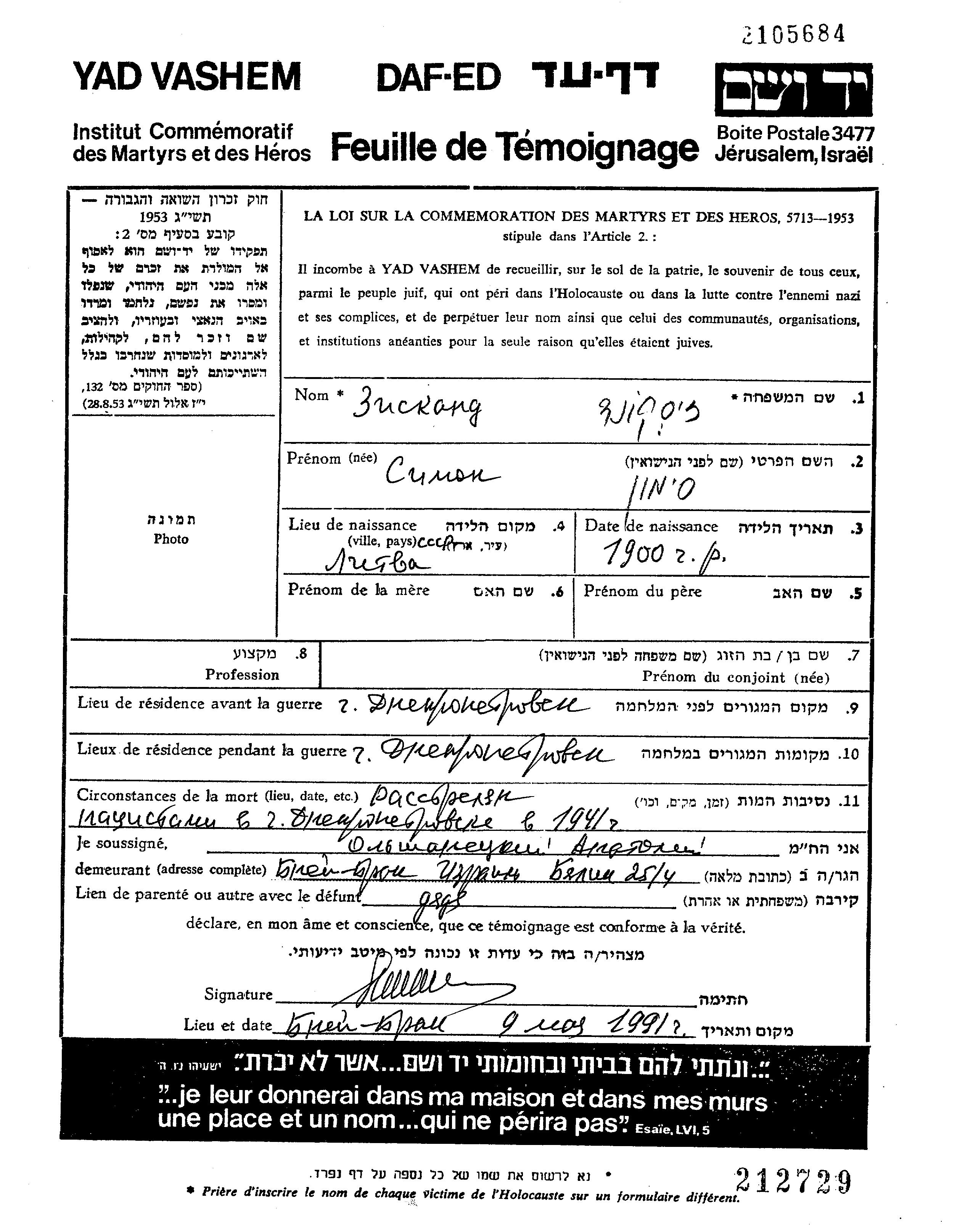 Simon a été assassiné pendant la Shoah. Lieu de la mort: Dnepropetrovsk, Ukraine (URSS).