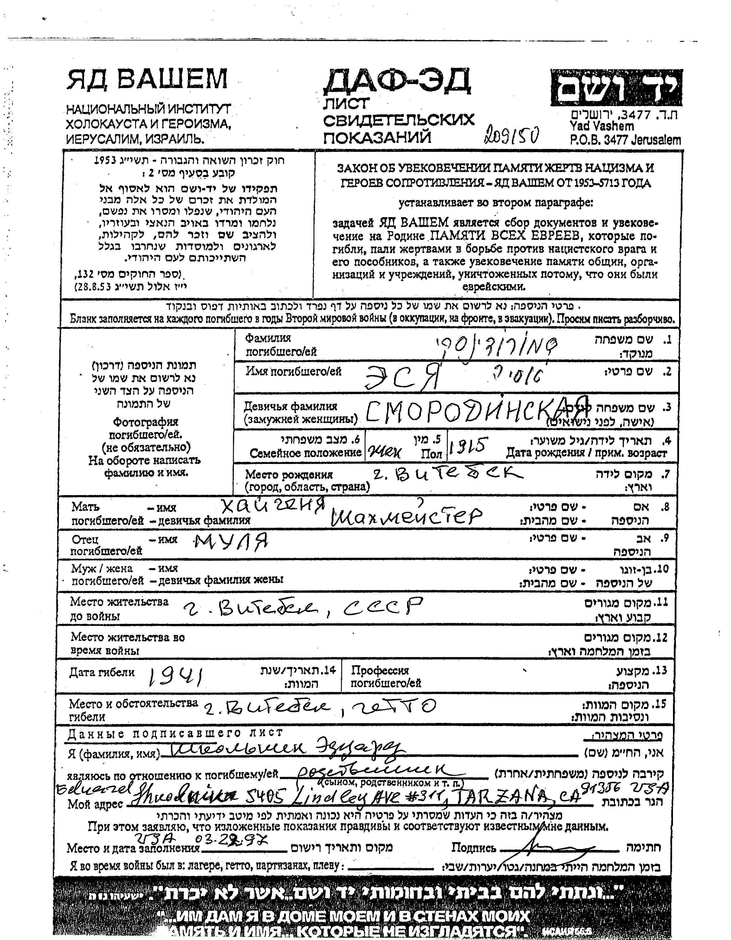 Yad Vashem - Pages of Testimony Names Memorial Collection