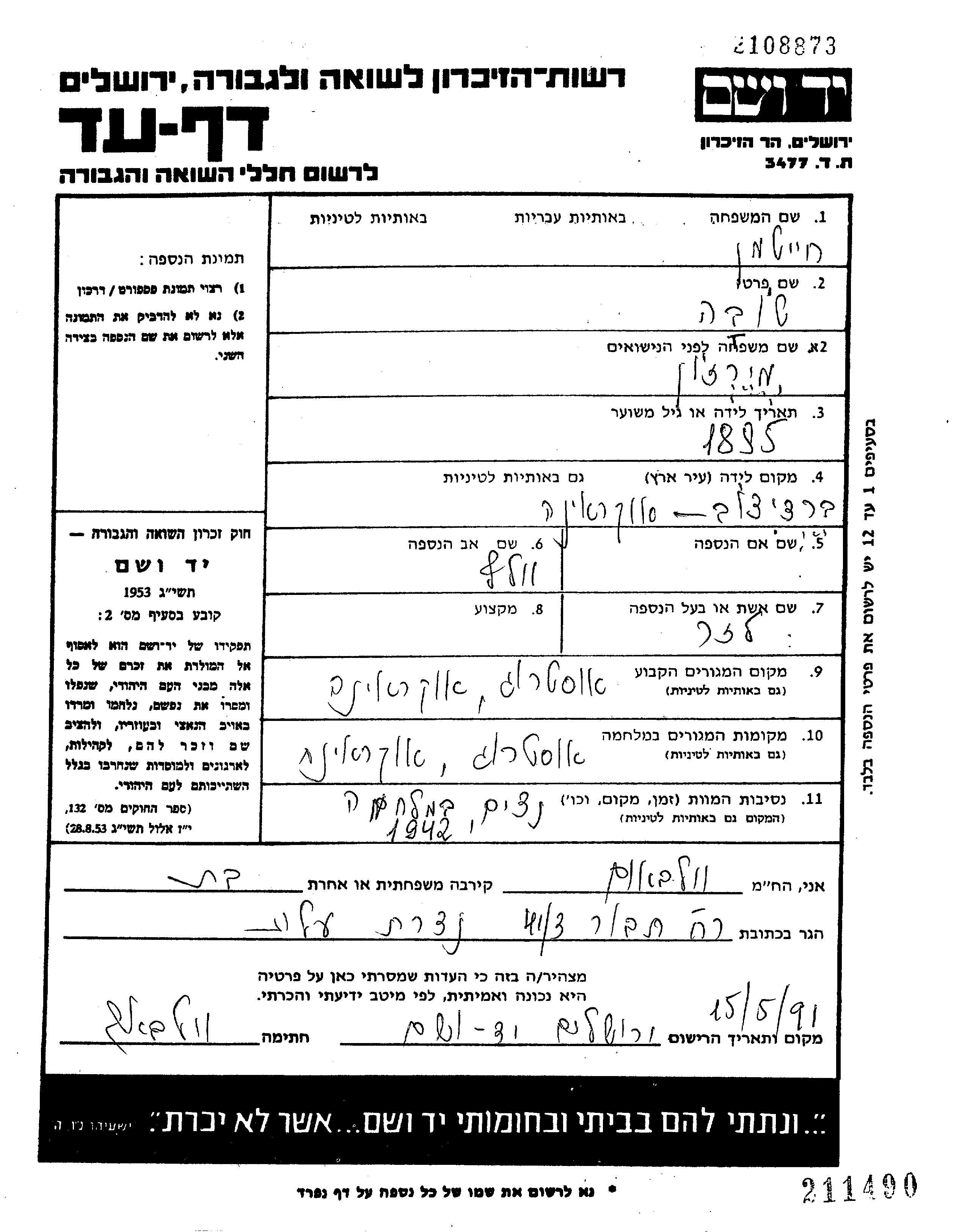 Yad Vashem - Pages of Testimony Names Memorial Collection
