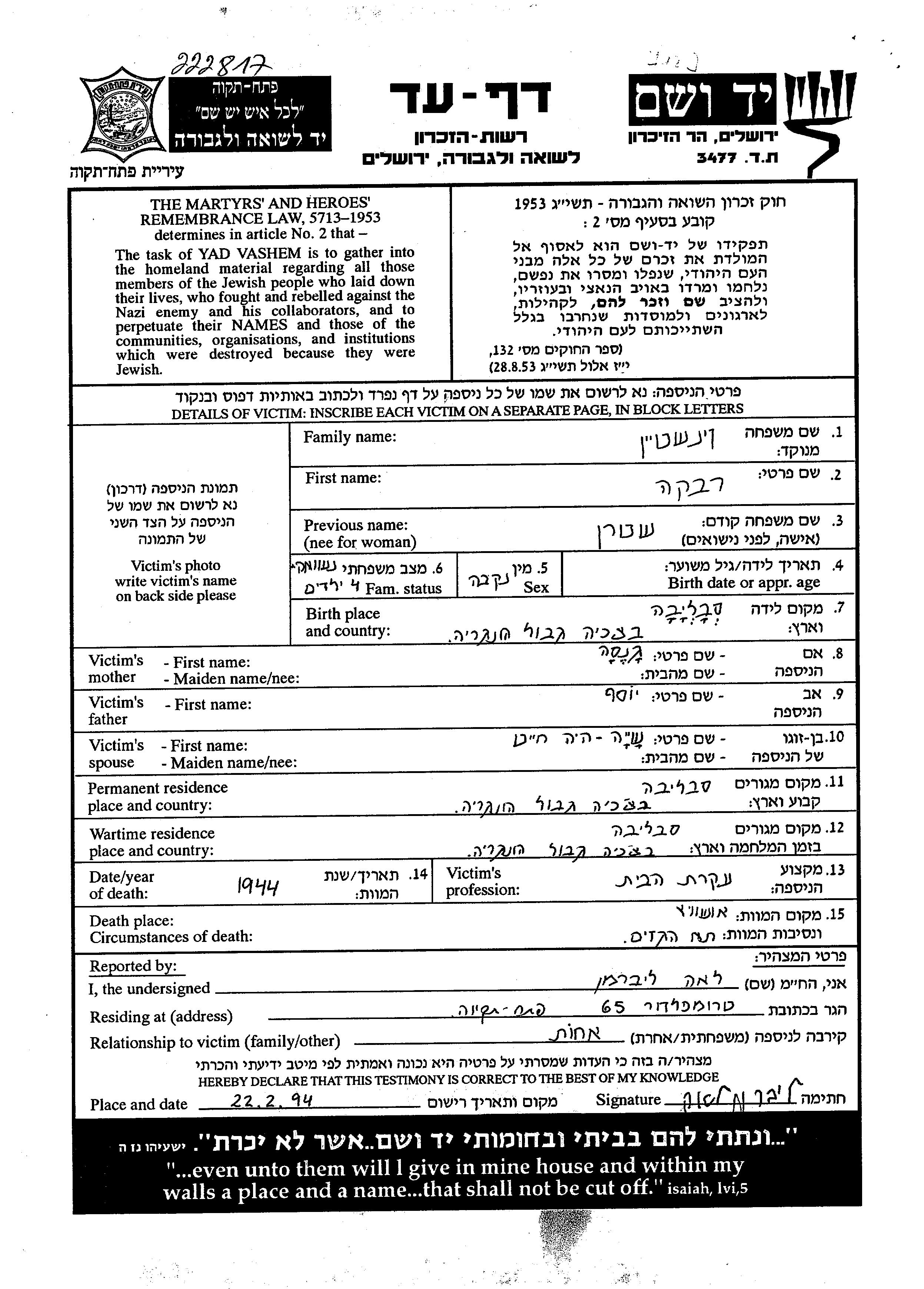 Yad Vashem - Pages of Testimony Names Memorial Collection