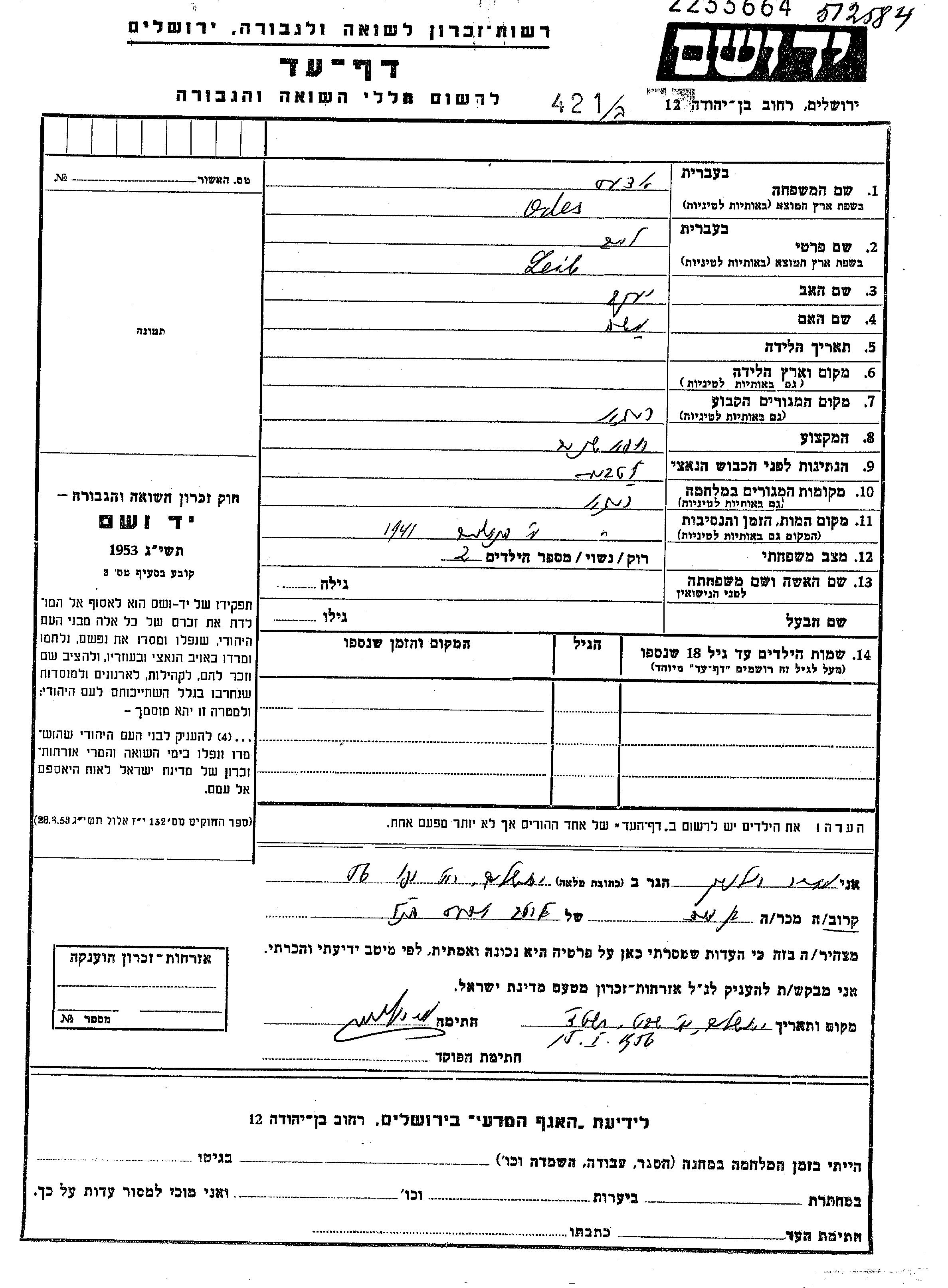 Yad Vashem - Pages of Testimony Names Memorial Collection