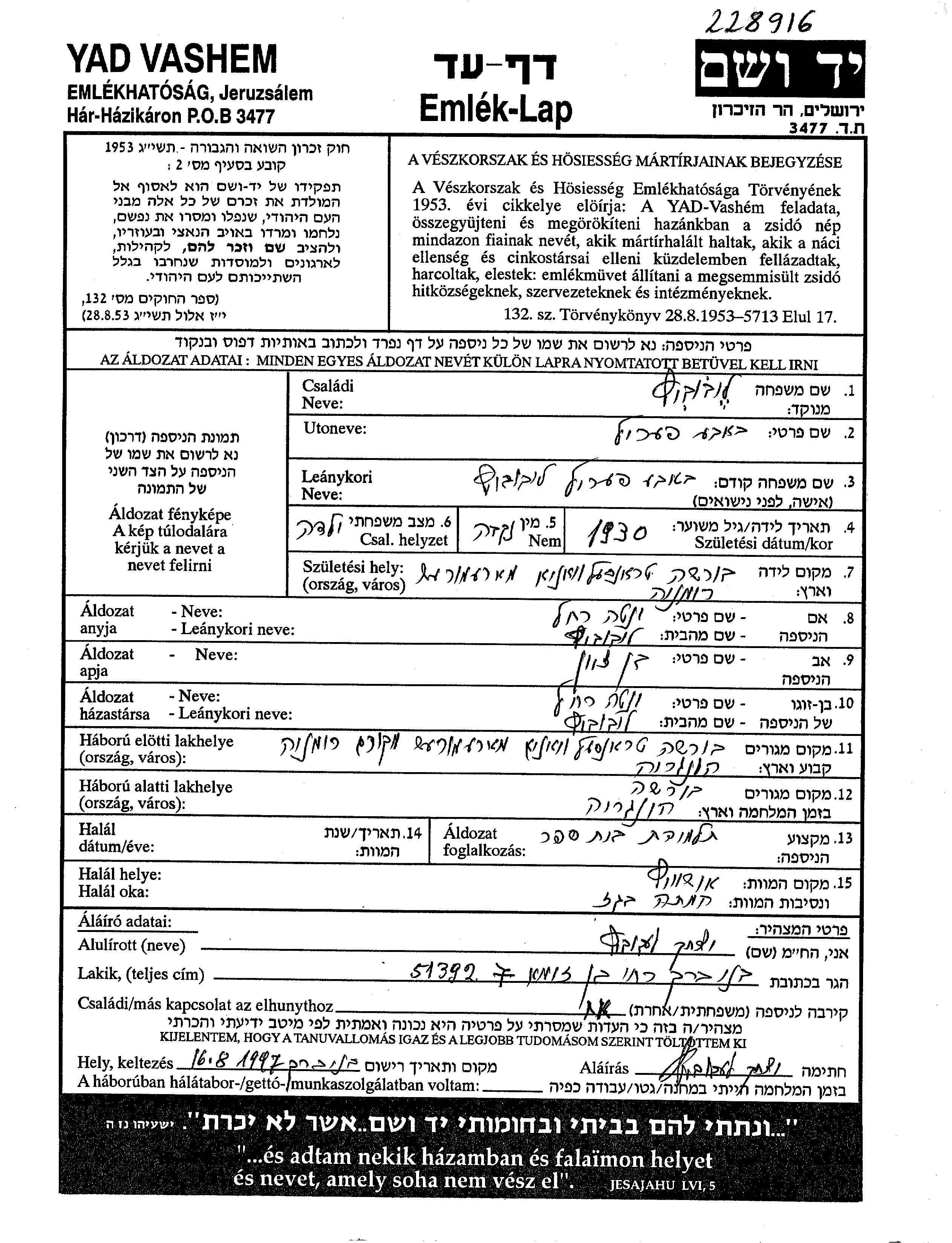 Yad Vashem - Pages of Testimony Names Memorial Collection