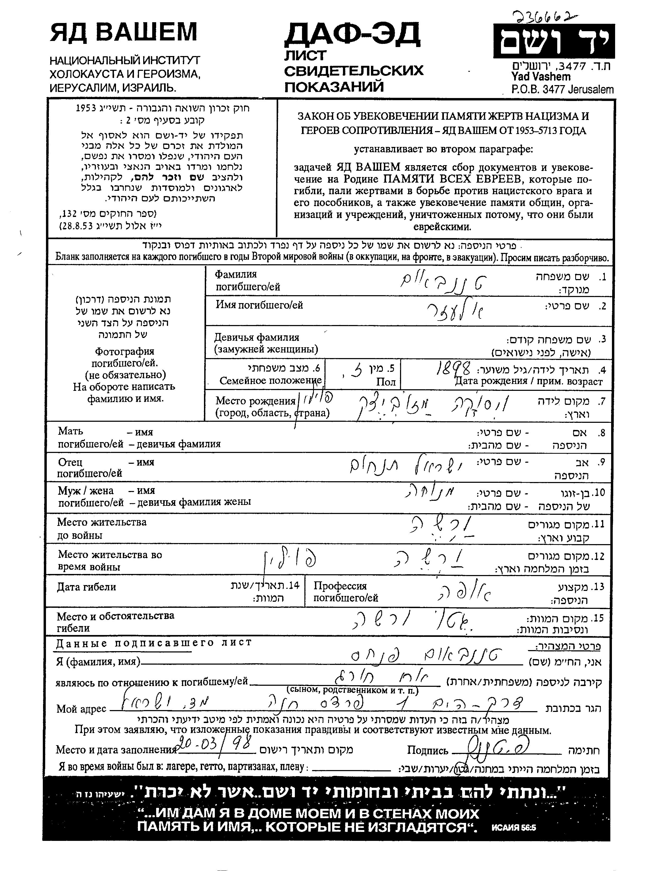 Yad Vashem - Pages of Testimony Names Memorial Collection