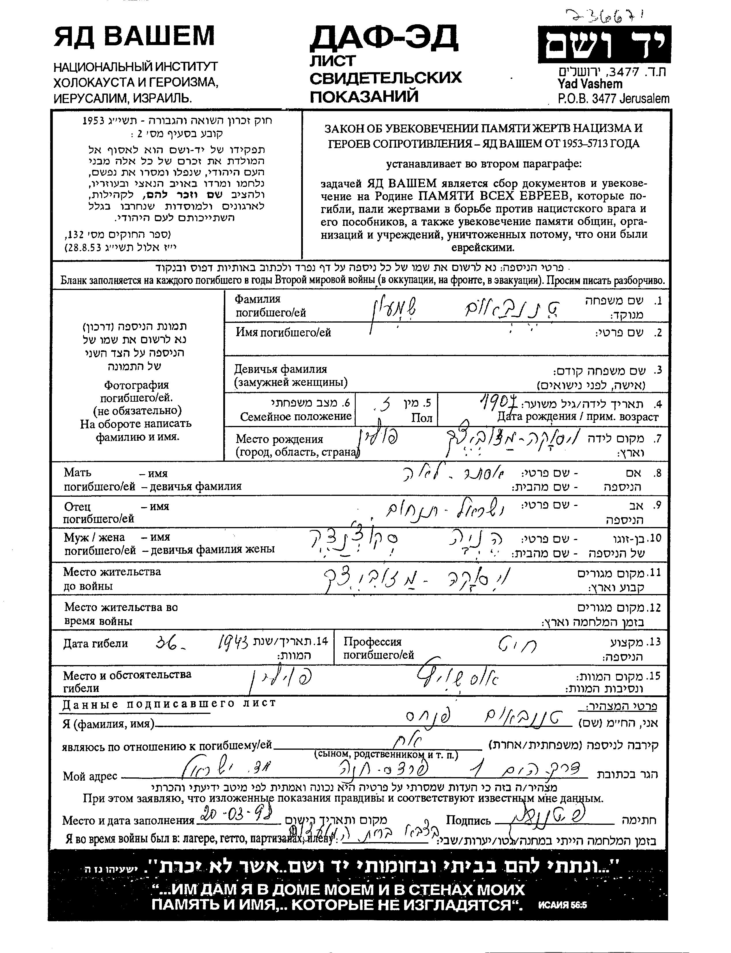 Yad Vashem - Pages of Testimony Names Memorial Collection