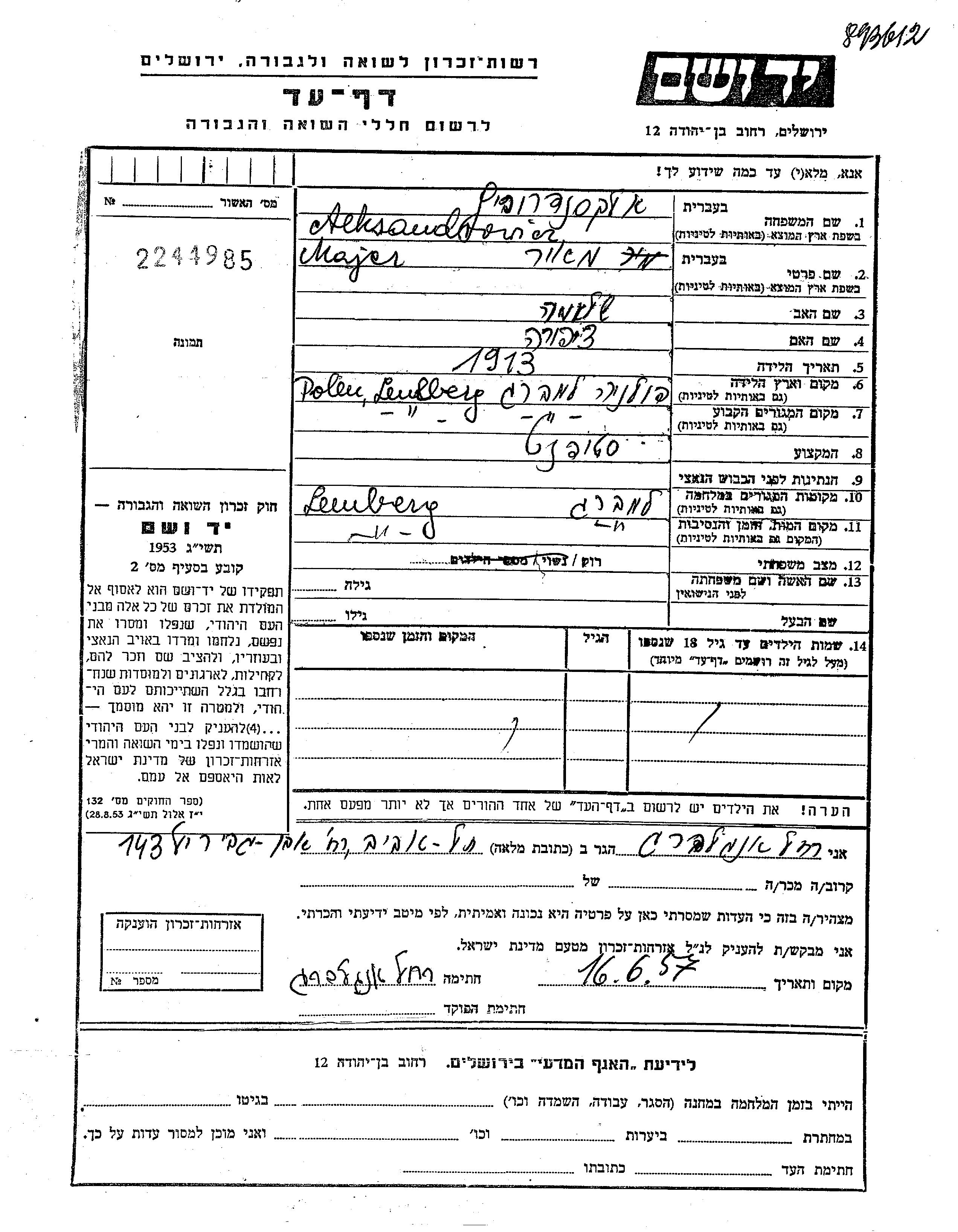 Yad Vashem - Pages of Testimony Names Memorial Collection