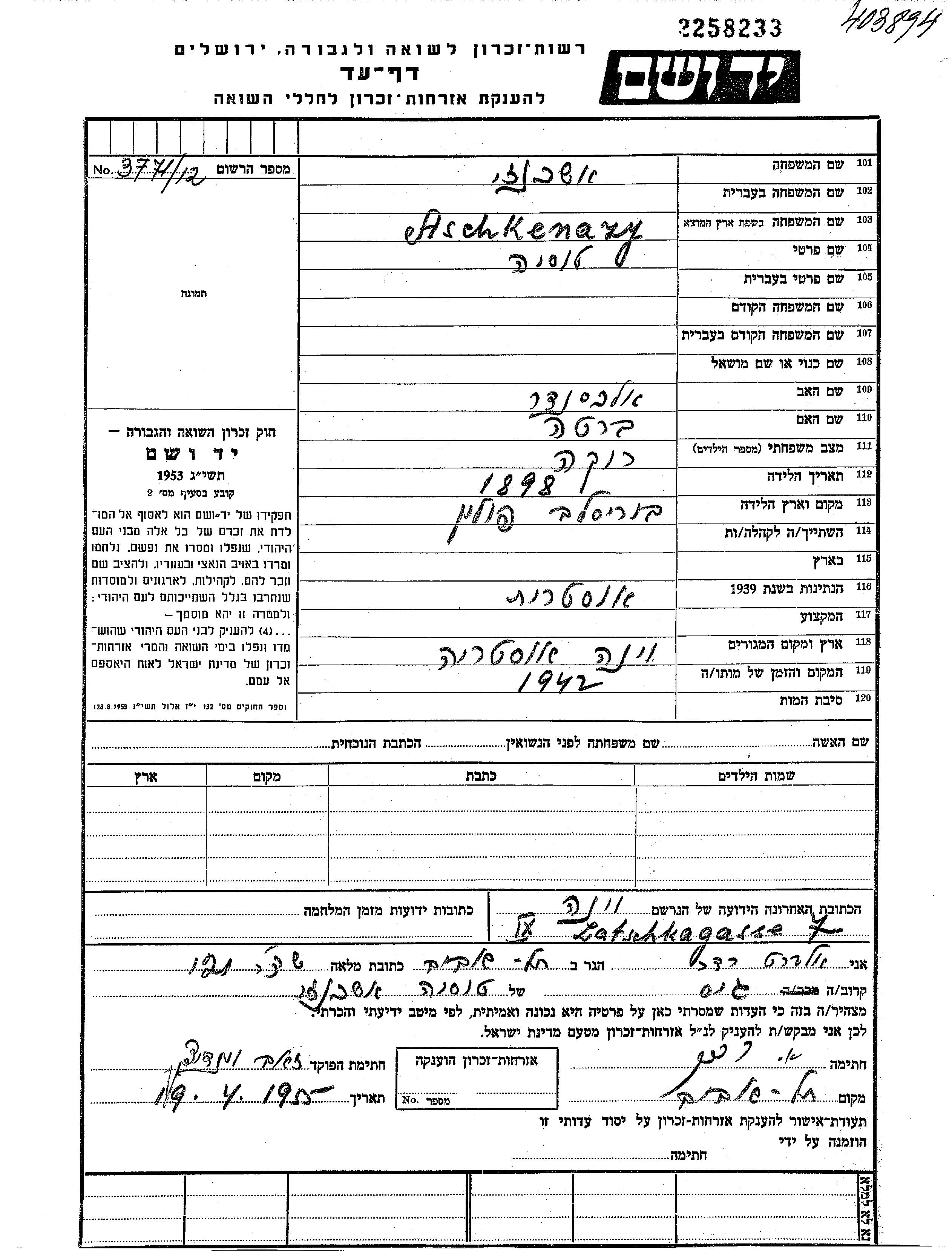 Recherche par lieu de résidence permanente avant la Shoah, ville, village, département, région ou pays.