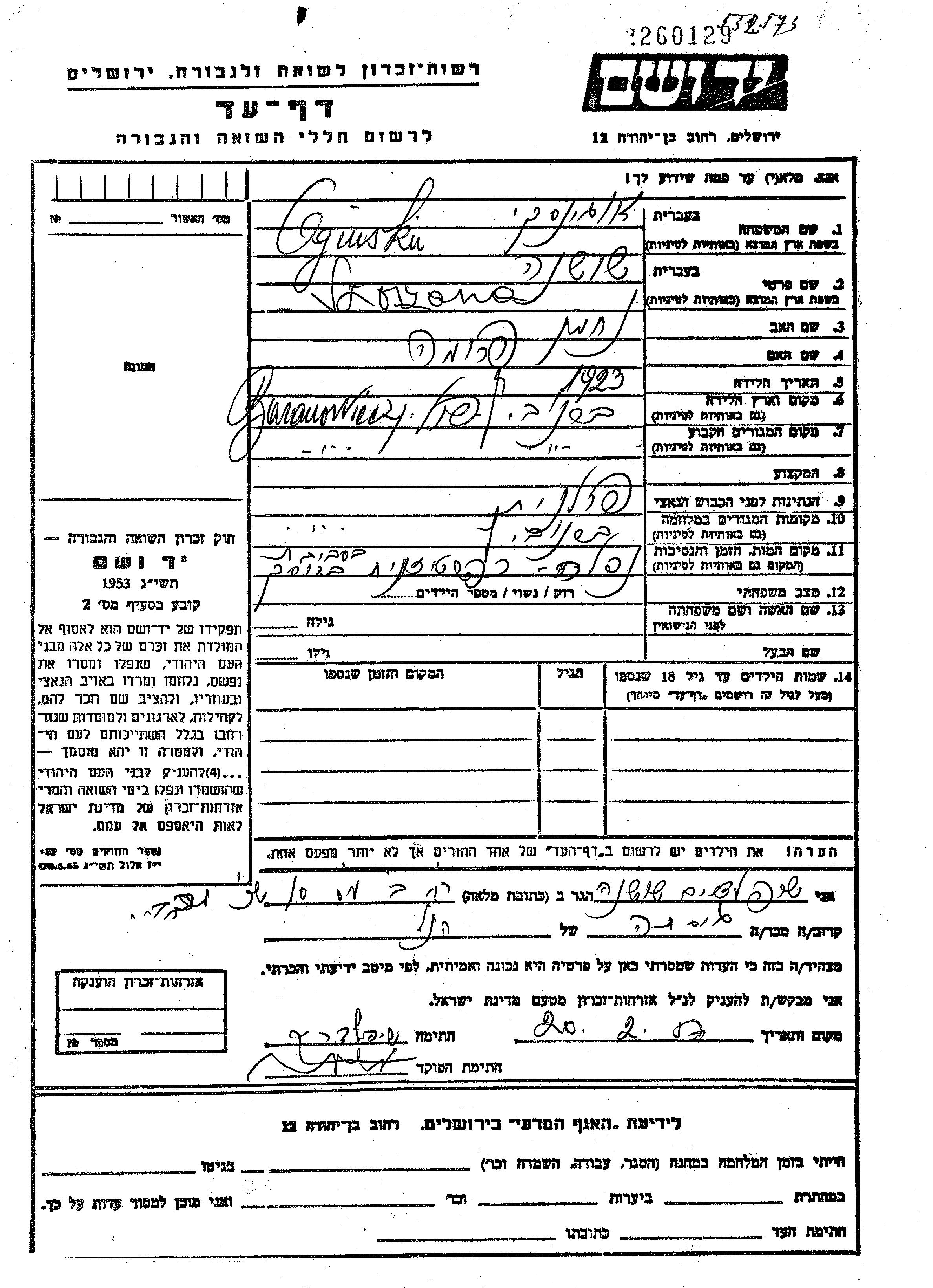 Yad Vashem - Pages of Testimony Names Memorial Collection