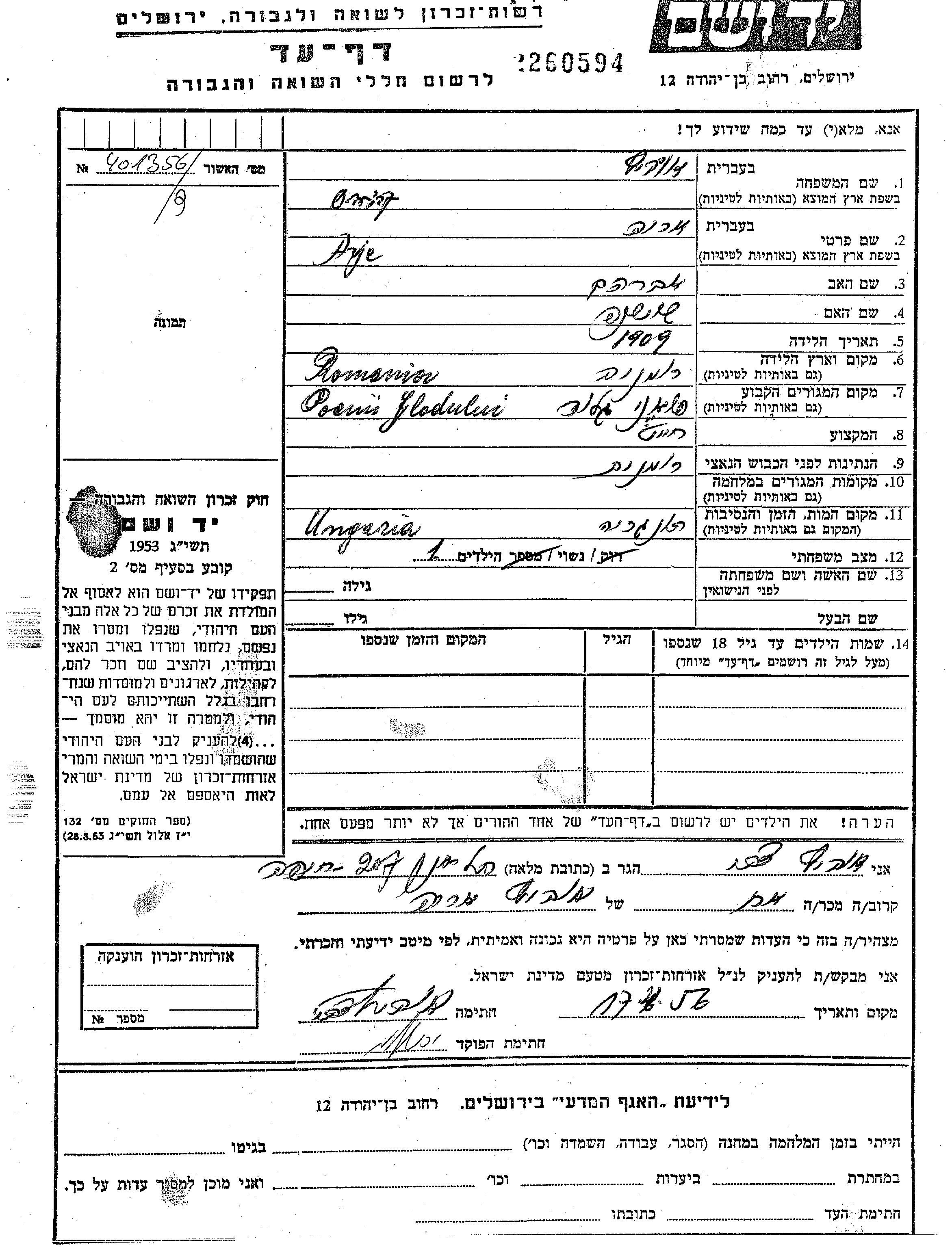 Yad Vashem - Pages of Testimony Names Memorial Collection