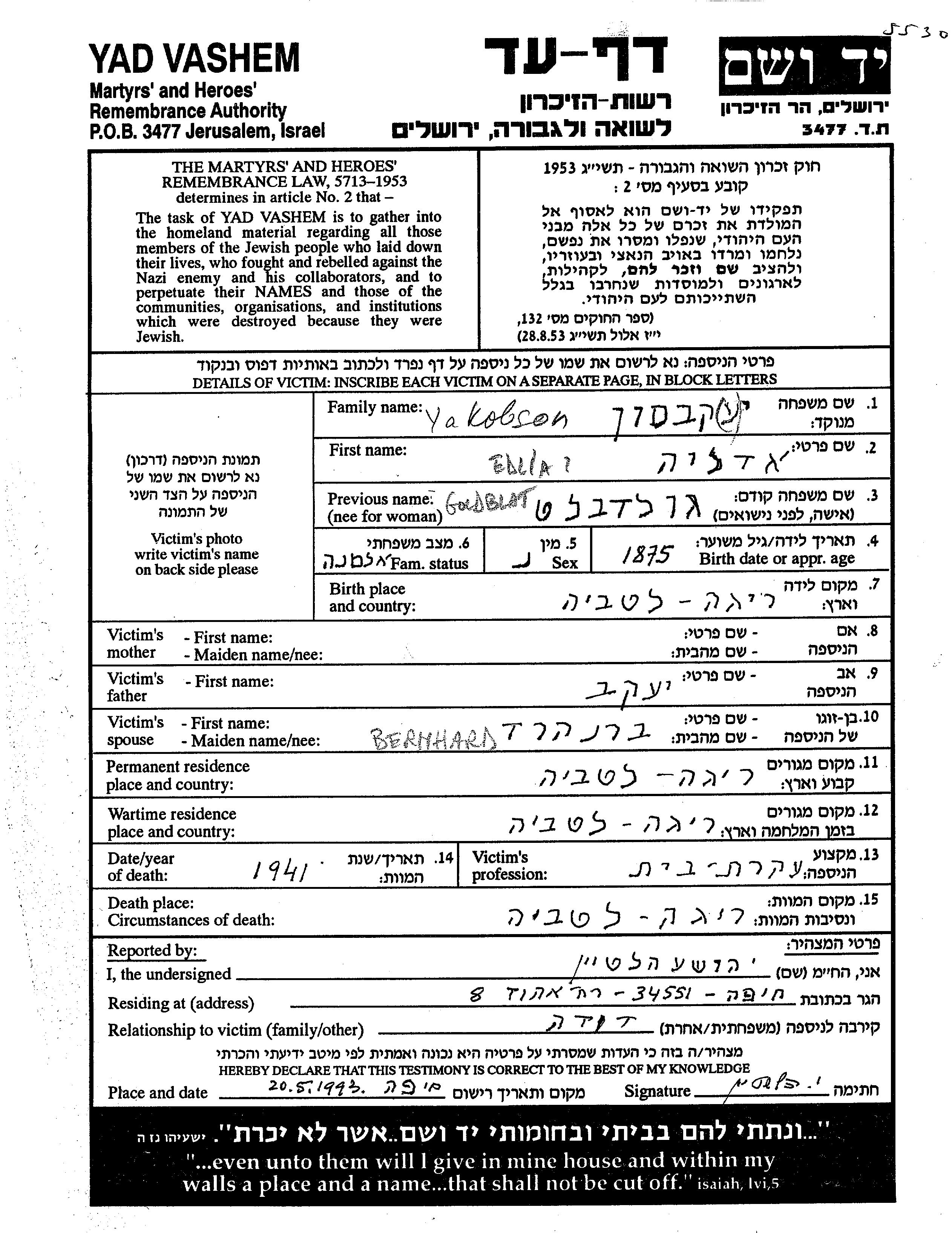 Yad Vashem - Pages of Testimony Names Memorial Collection