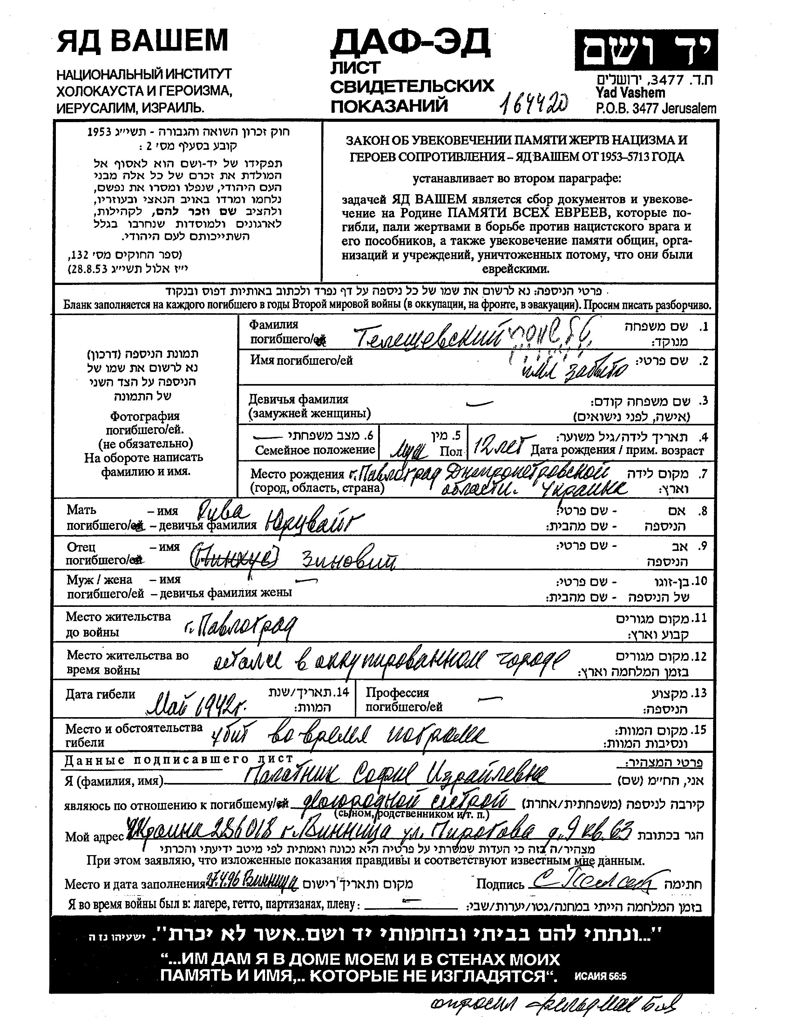 Recherche par nom du dépositeur de la Feuille de témoignage. Cette recherché indique aussi les noms de jeunes filles.