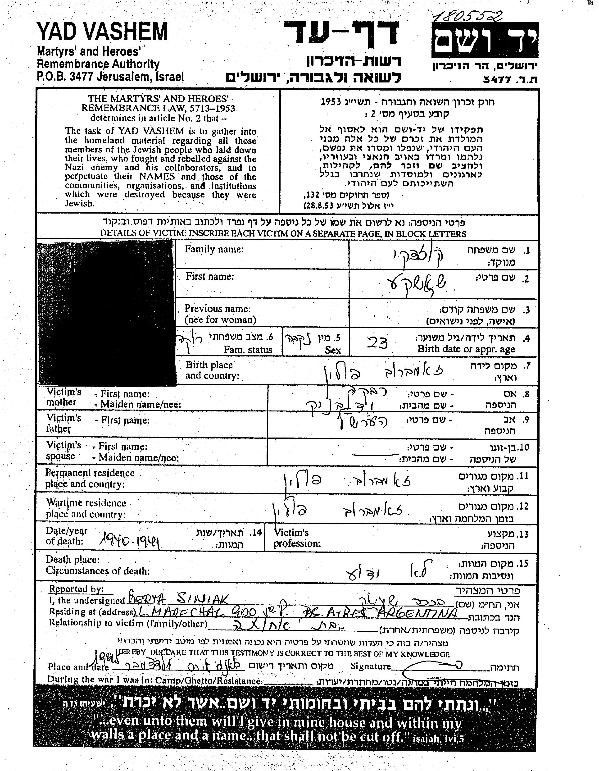 Yad Vashem - Pages of Testimony Names Memorial Collection