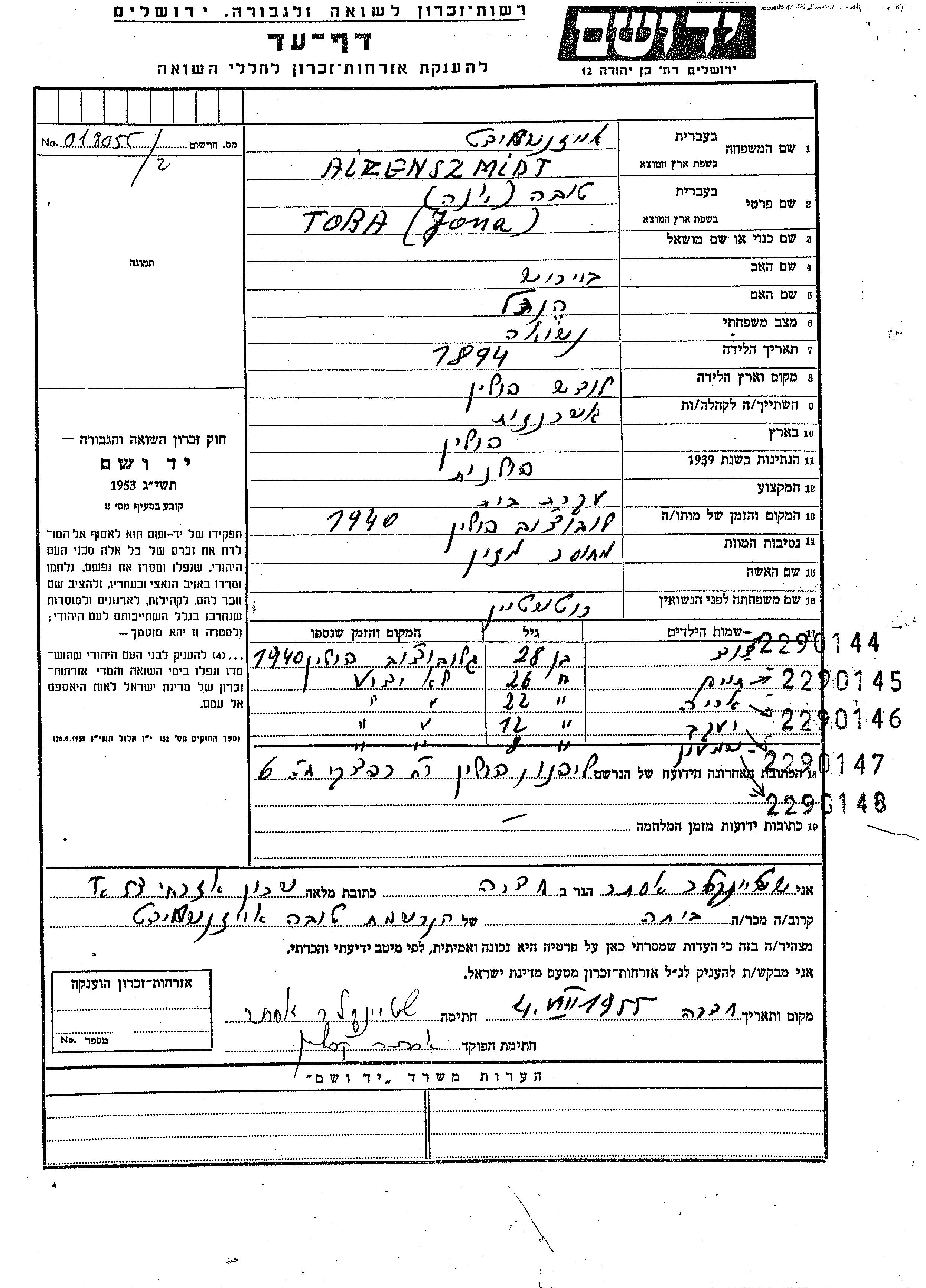 Yad Vashem - Pages of Testimony Names Memorial Collection