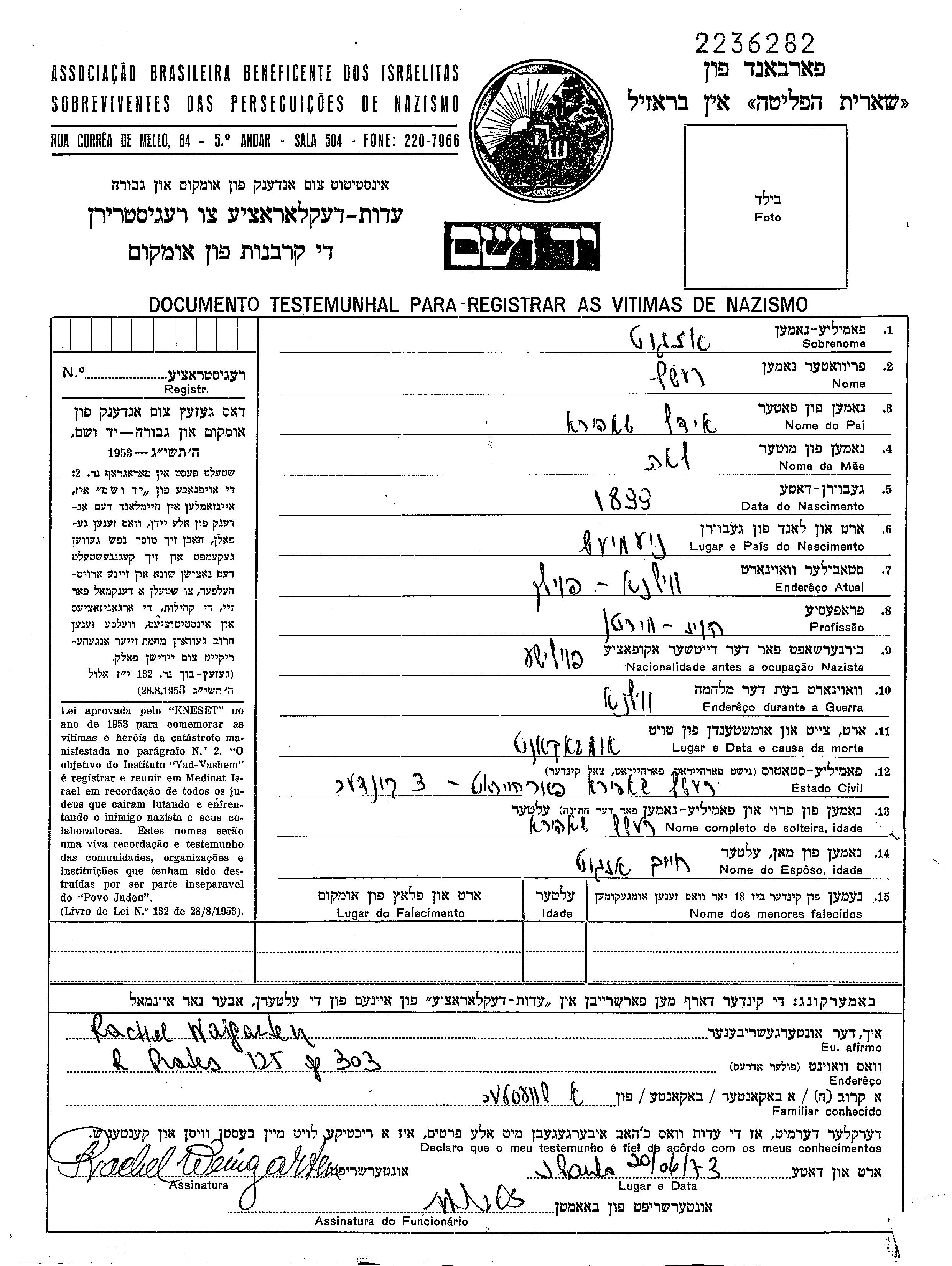Azgut Rakhel 1899 Wilno, Pologne Feuille de témoignage