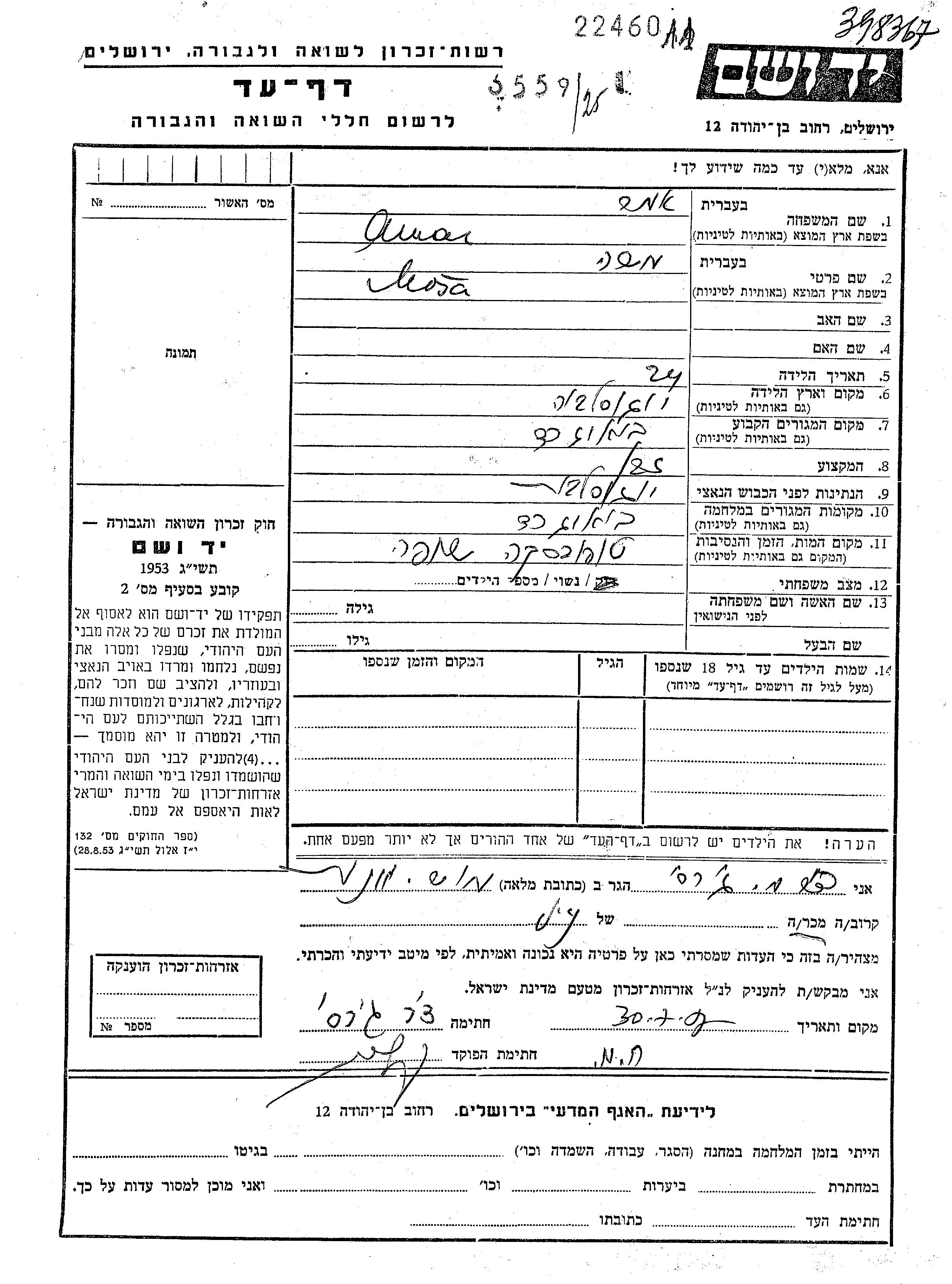 Mosa a été assassiné pendant la Shoah. Lieu de la mort: Topovske Šupe, Yugoslavie.