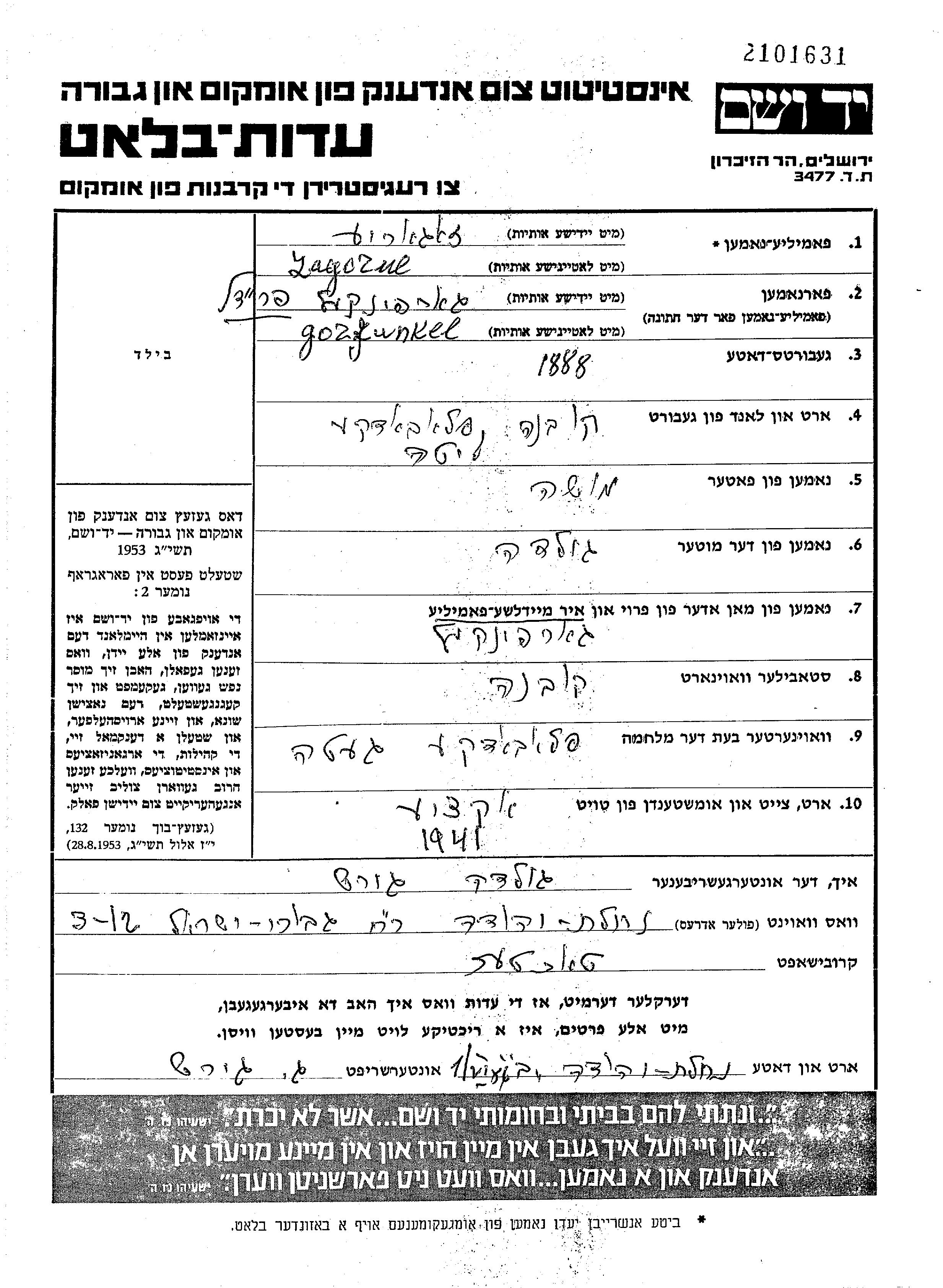 Yad Vashem - Pages of Testimony Names Memorial Collection