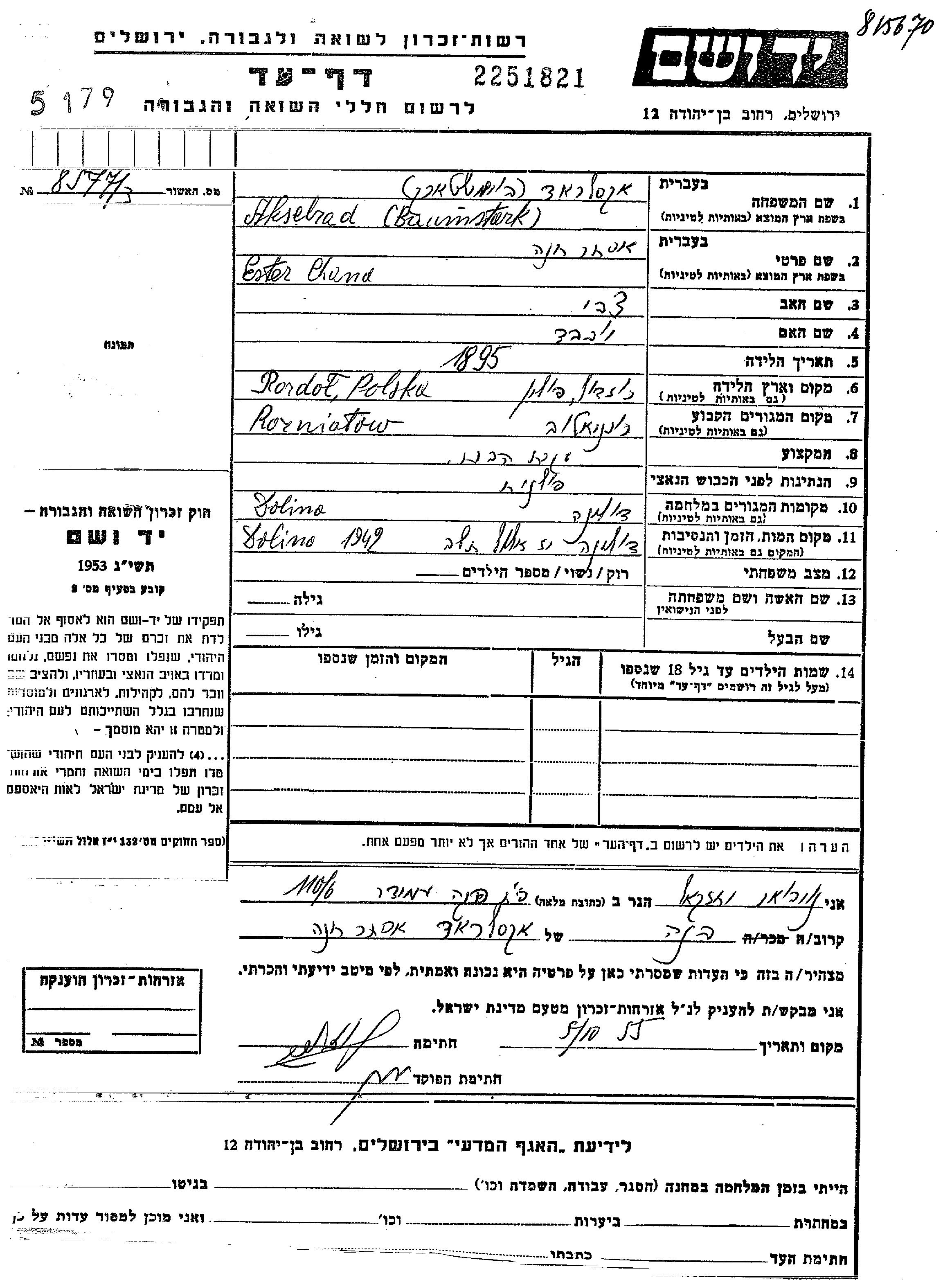 Yad Vashem - Pages of Testimony Names Memorial Collection