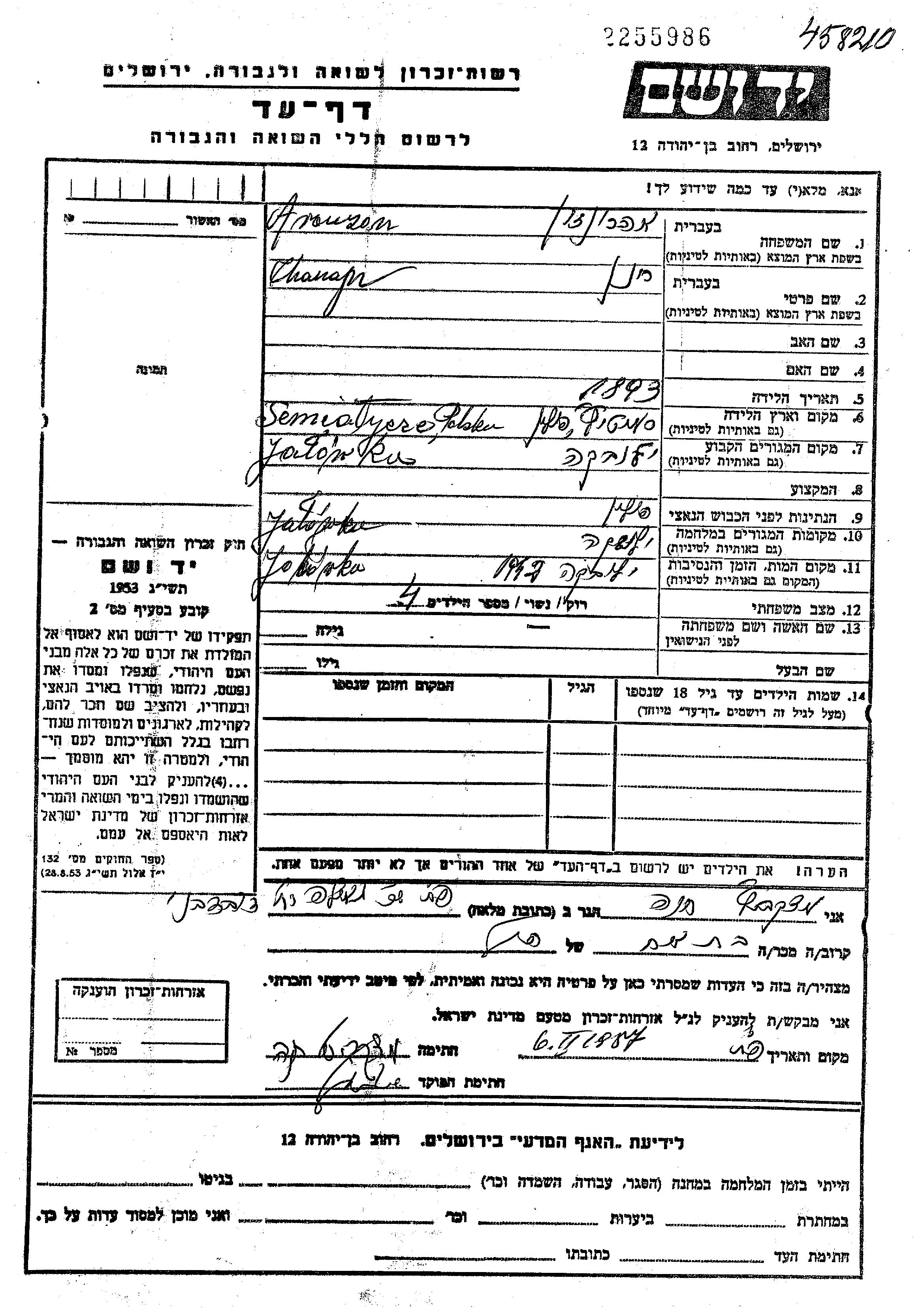 Yad Vashem - Pages of Testimony Names Memorial Collection