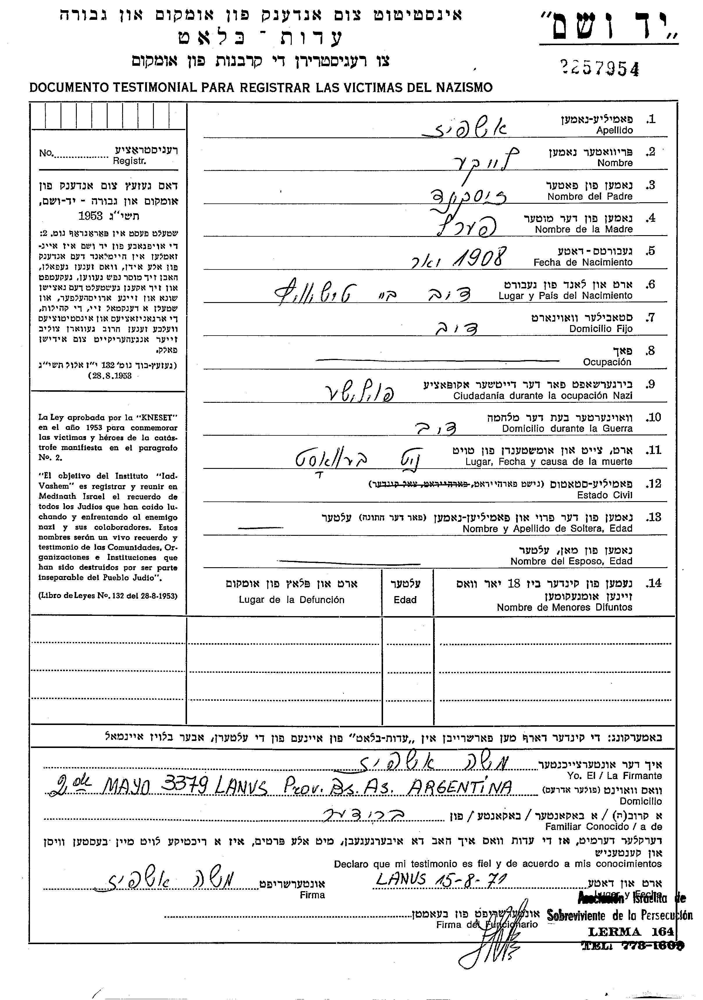 Yad Vashem - Pages of Testimony Names Memorial Collection