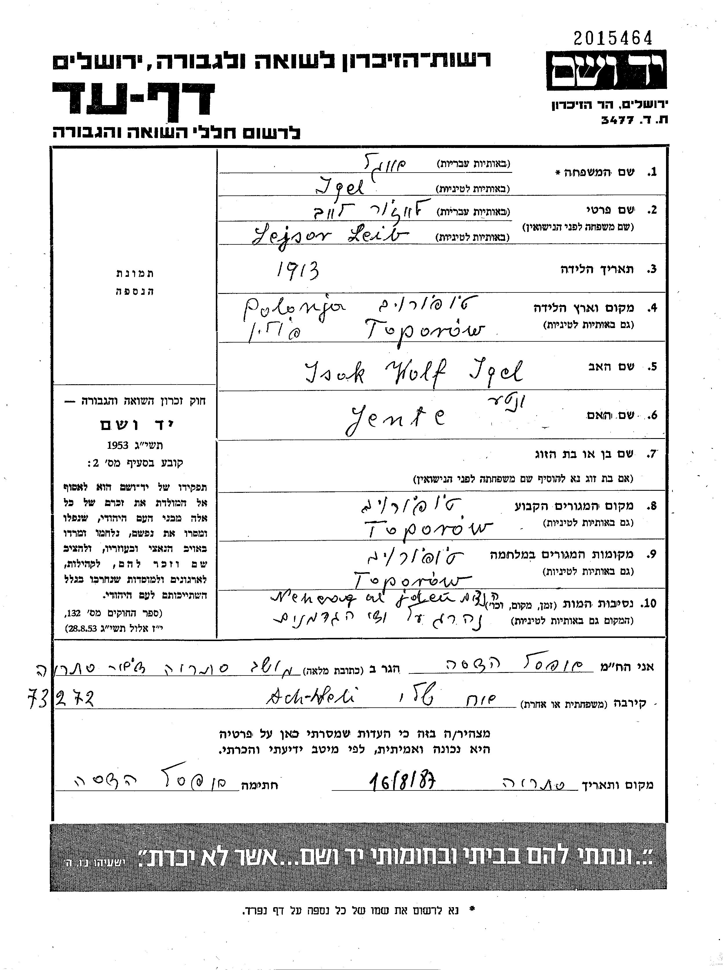 Yad Vashem - Pages of Testimony Names Memorial Collection