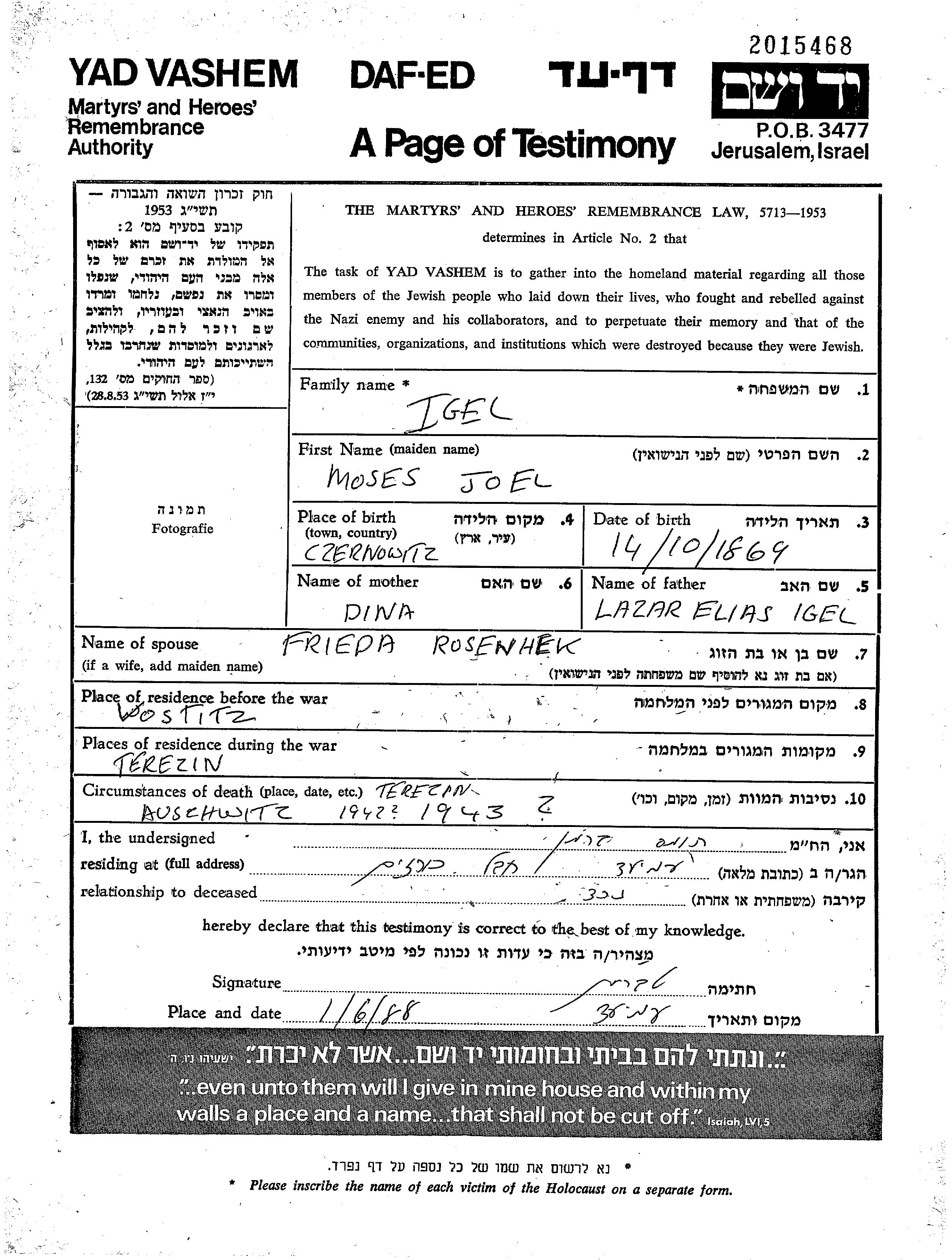 Recherche par lieu de résidence permanente avant la Shoah, ville, village, département, région ou pays.