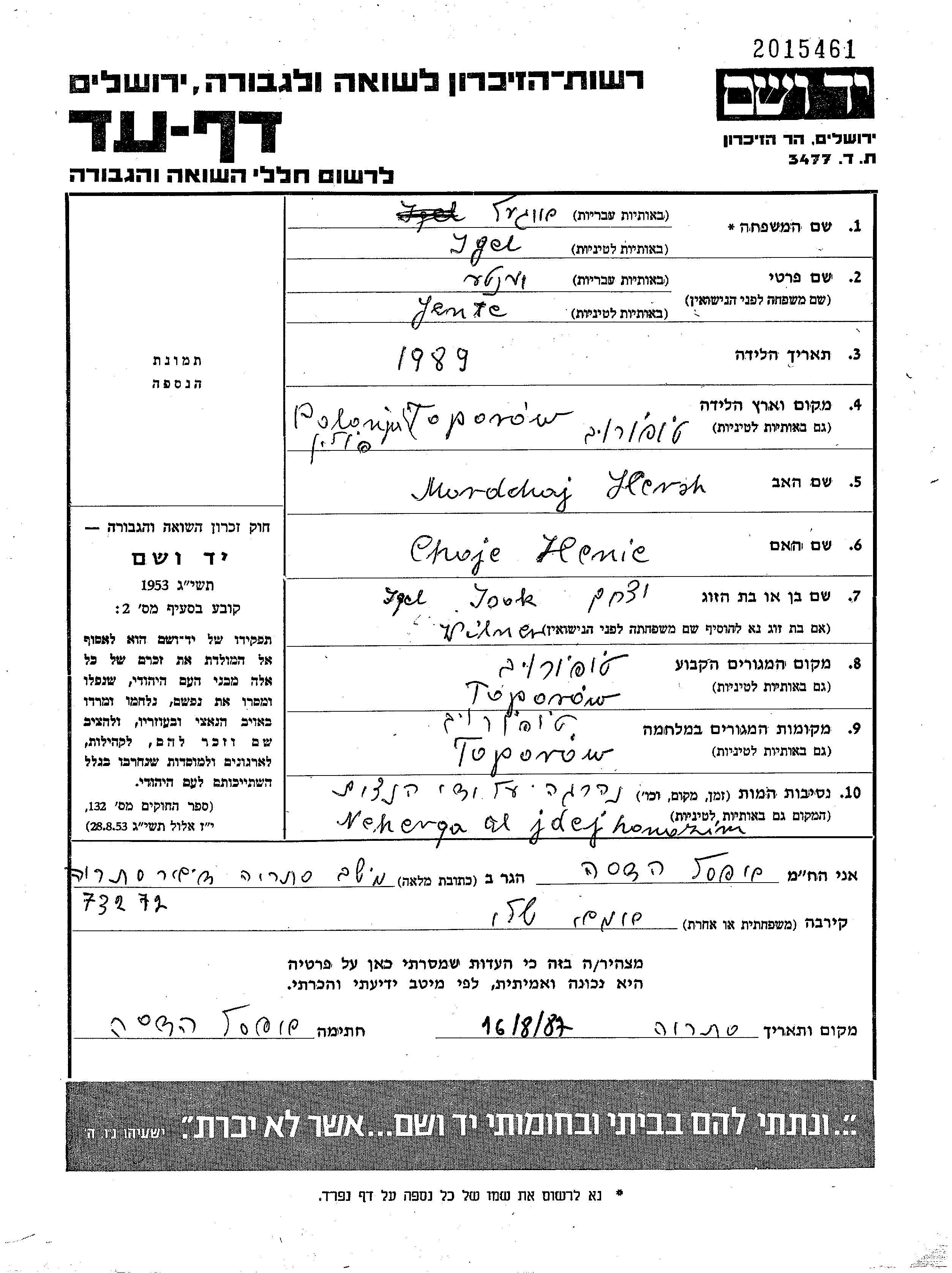 Yad Vashem - Pages of Testimony Names Memorial Collection