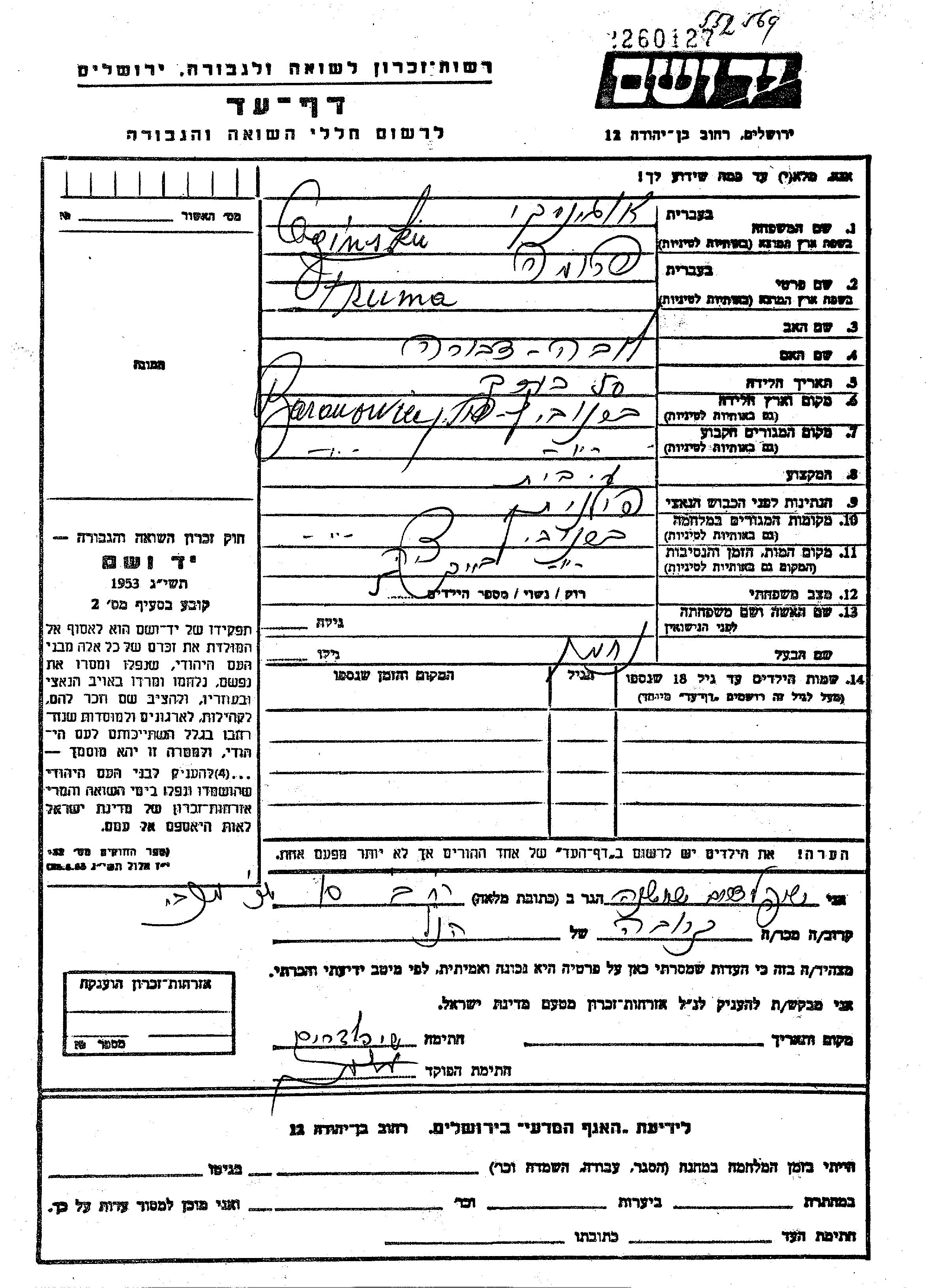 Yad Vashem - Pages of Testimony Names Memorial Collection