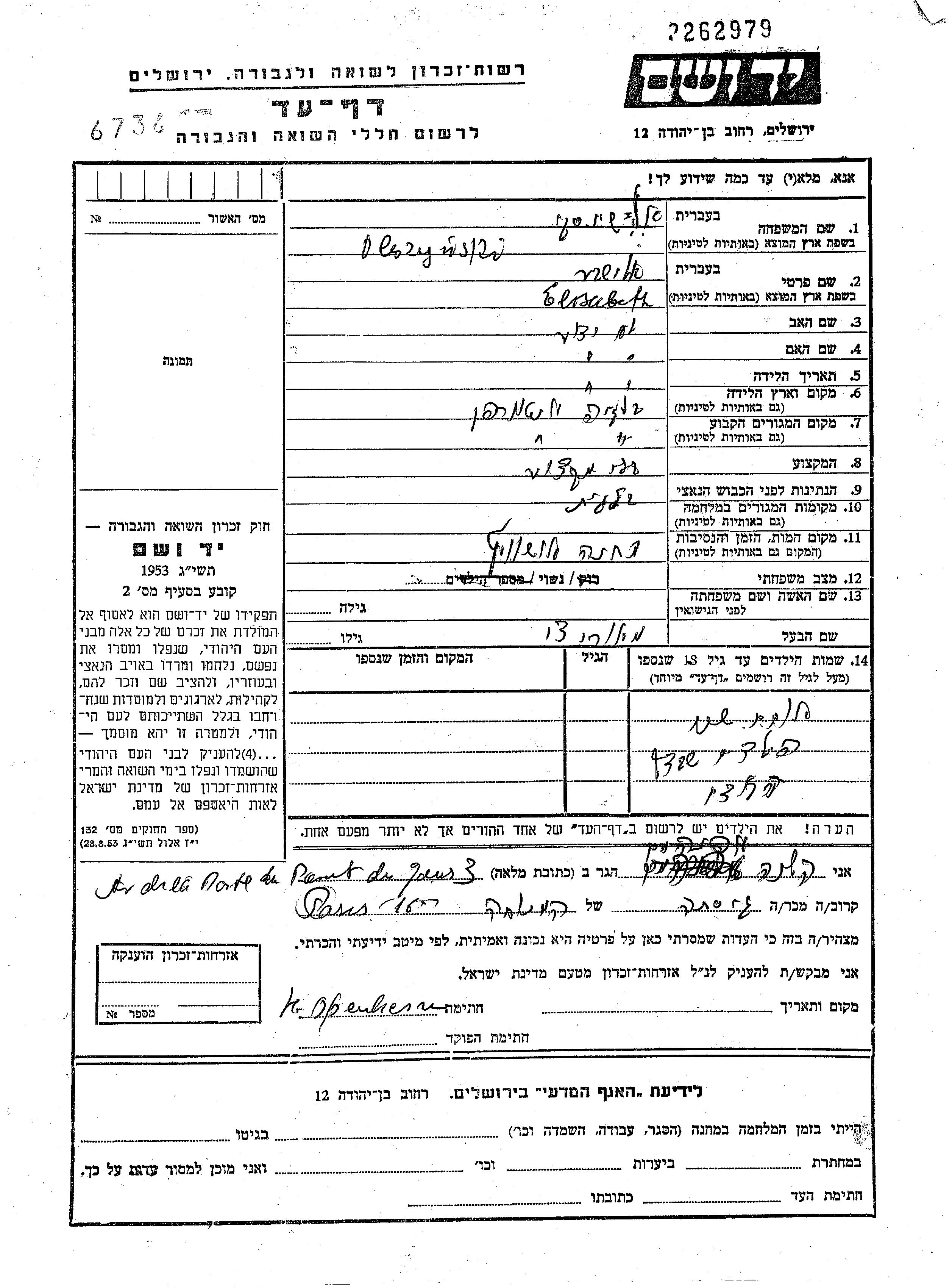 Olszynski Aleshinski Elizabeth Elisheva Antwerpen, Belgique Feuille de témoignage
