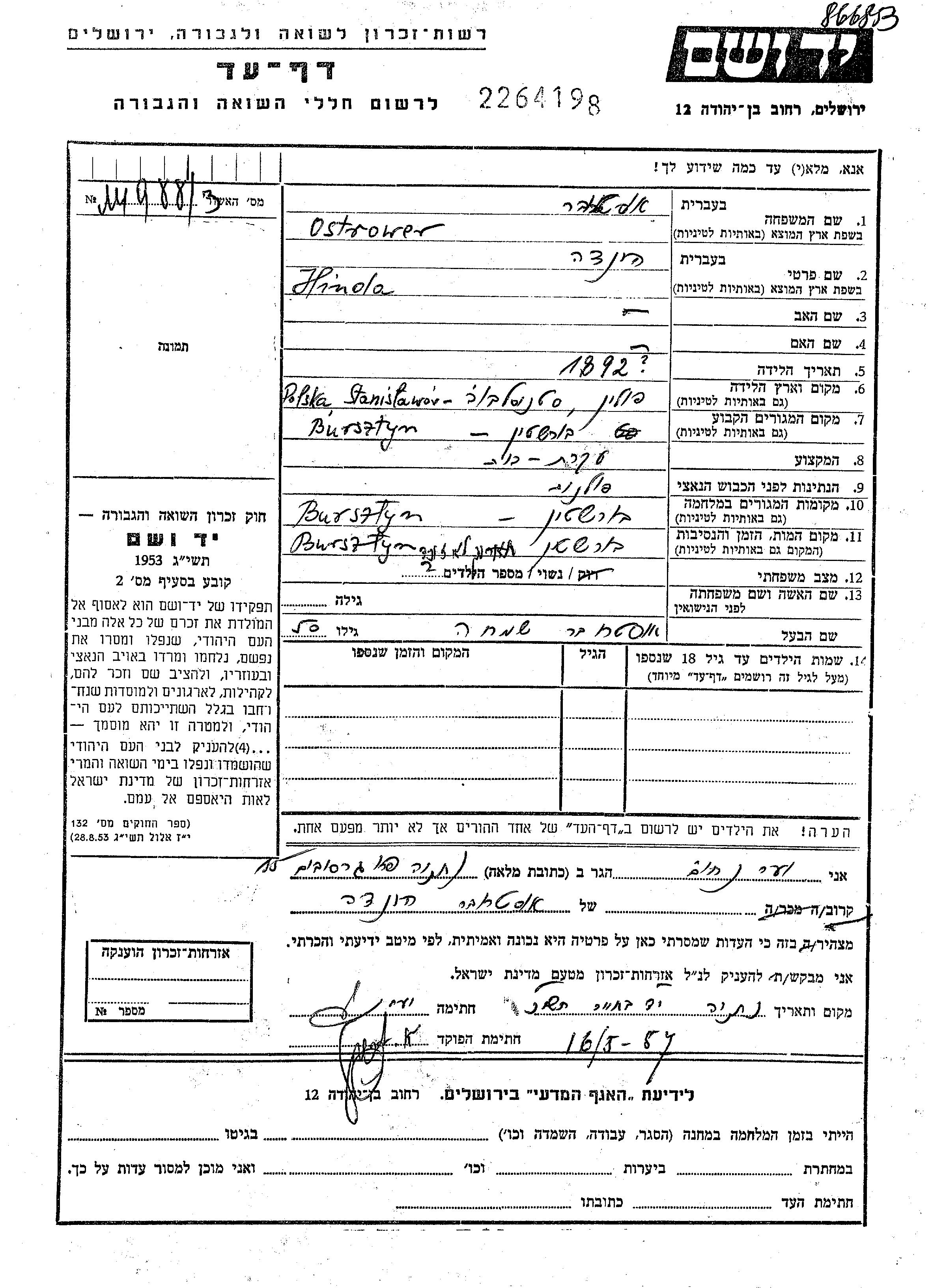 Yad Vashem - Pages of Testimony Names Memorial Collection
