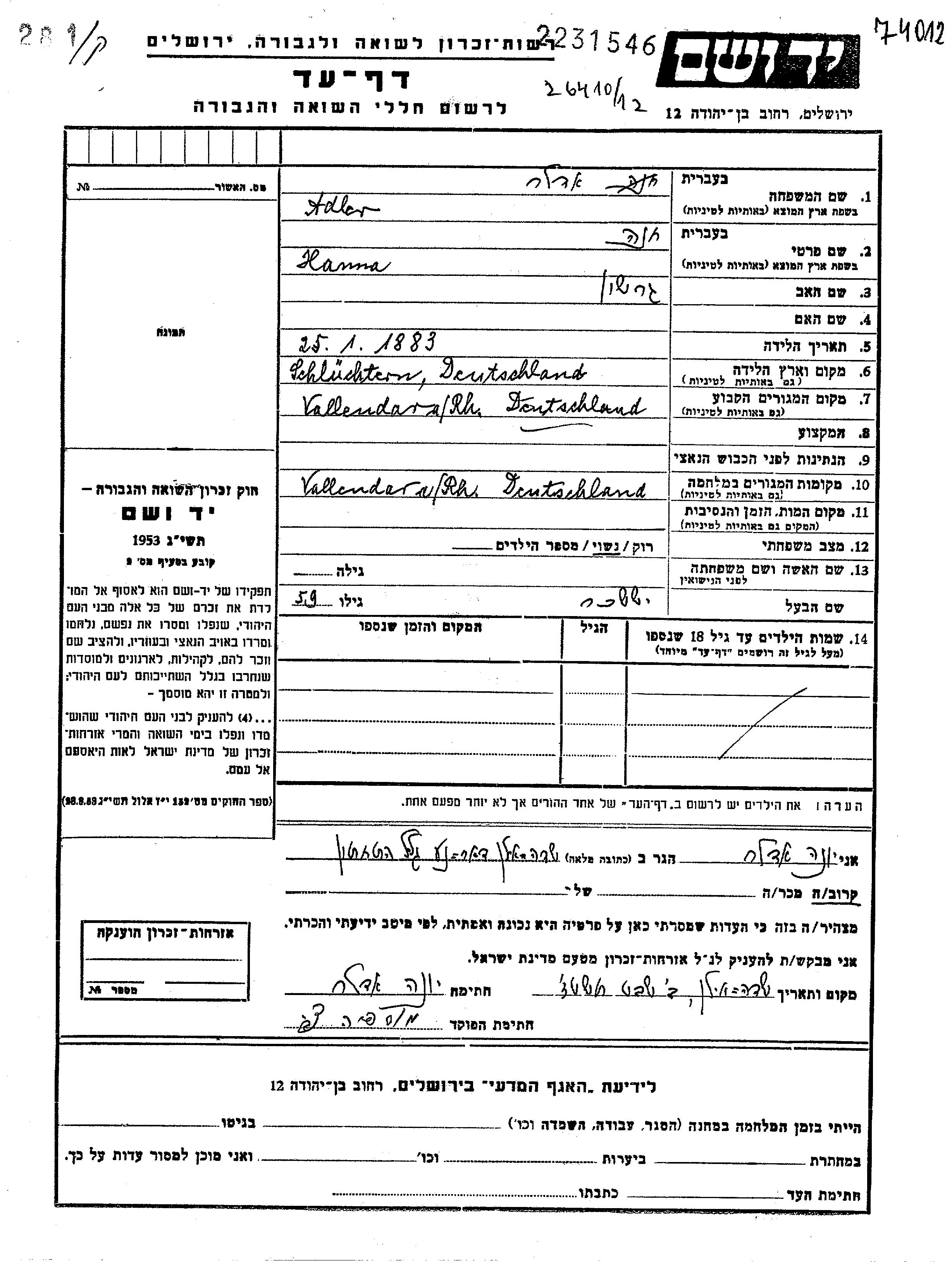 Yad Vashem - Pages of Testimony Names Memorial Collection