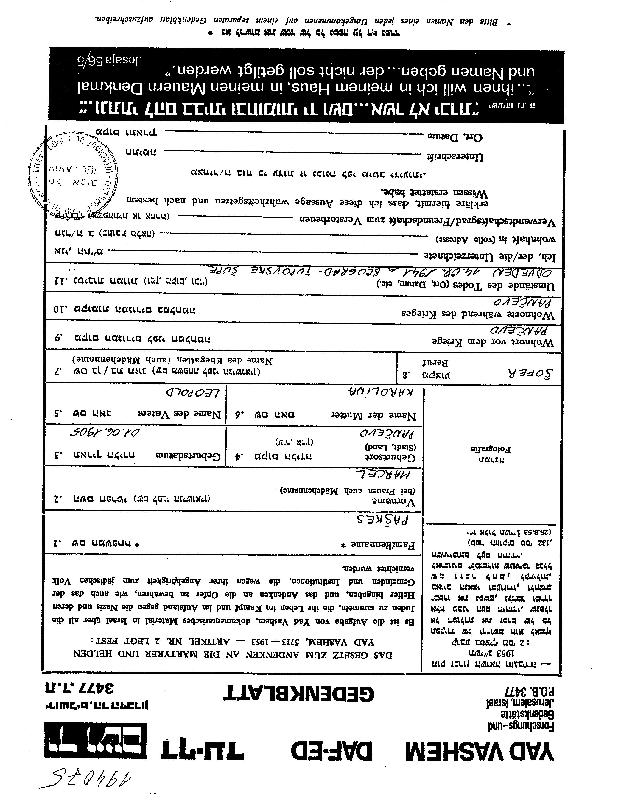 Yad Vashem - Pages of Testimony Names Memorial Collection