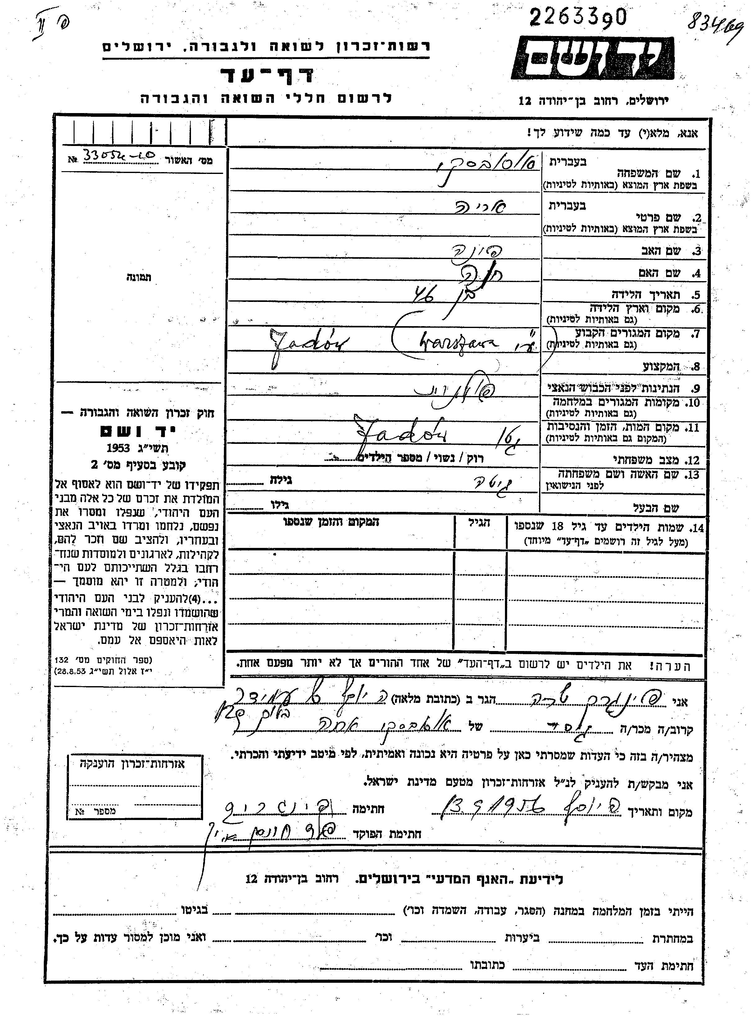 Yad Vashem - Pages of Testimony Names Memorial Collection