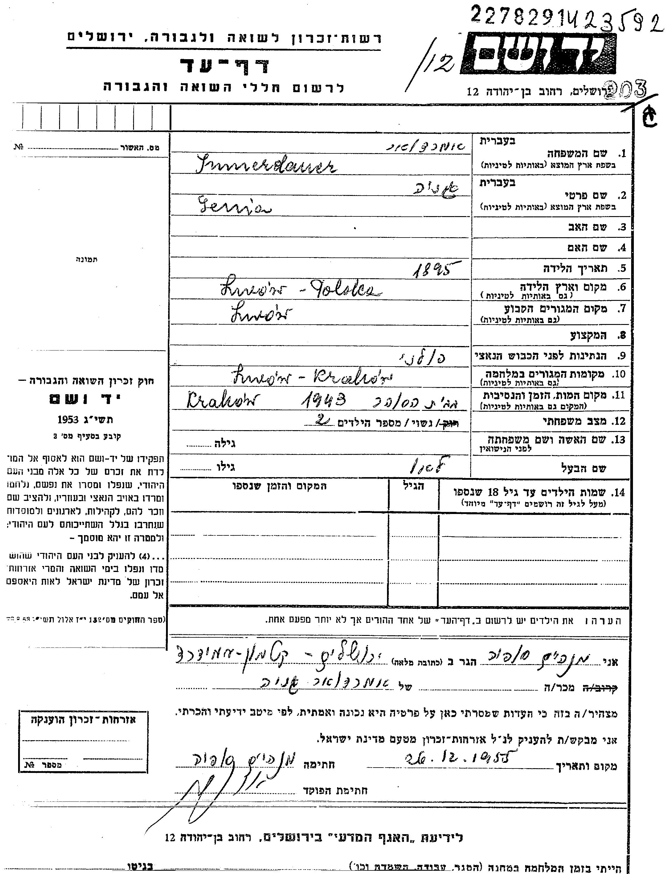 Yad Vashem - Pages of Testimony Names Memorial Collection