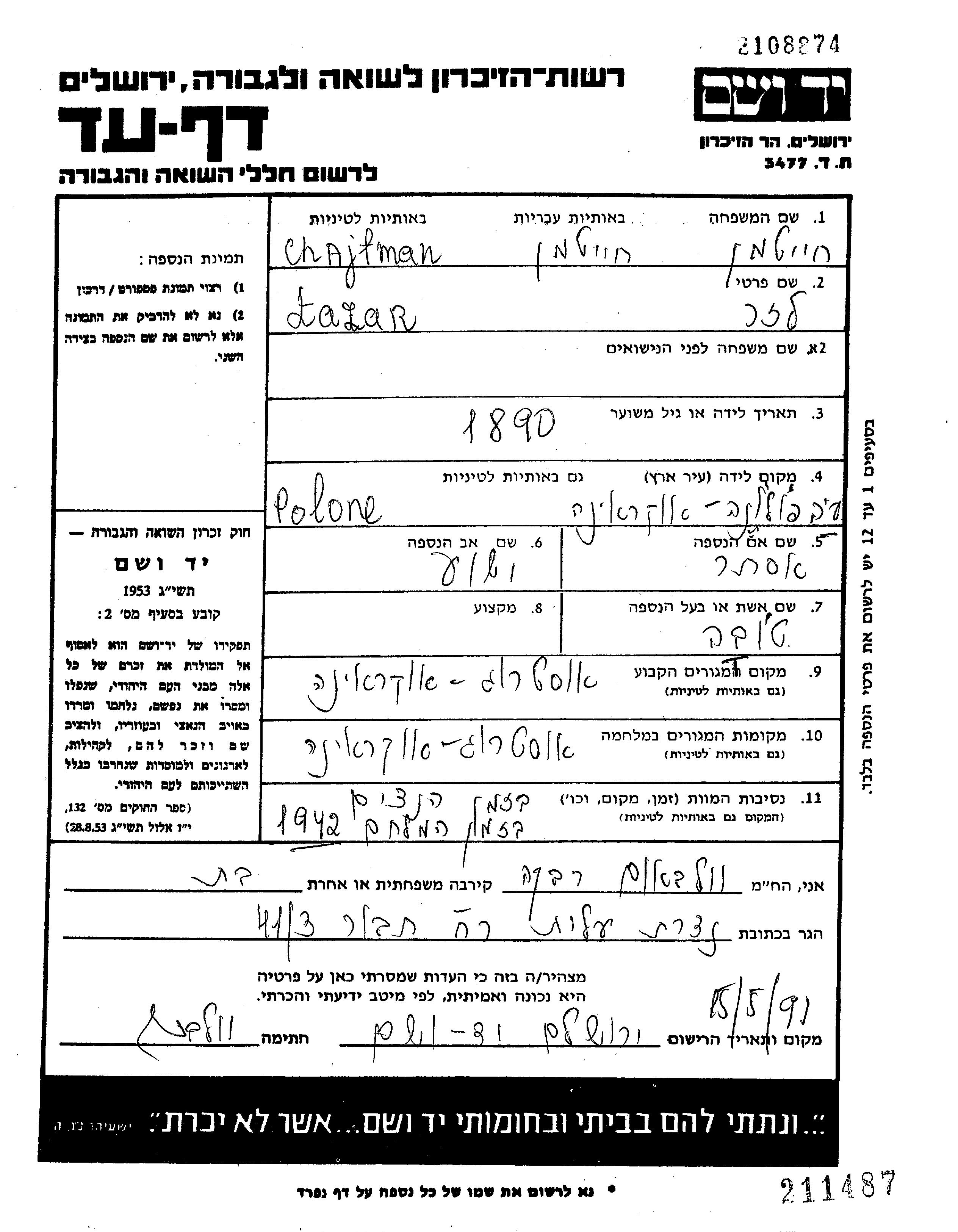 Yad Vashem - Pages of Testimony Names Memorial Collection