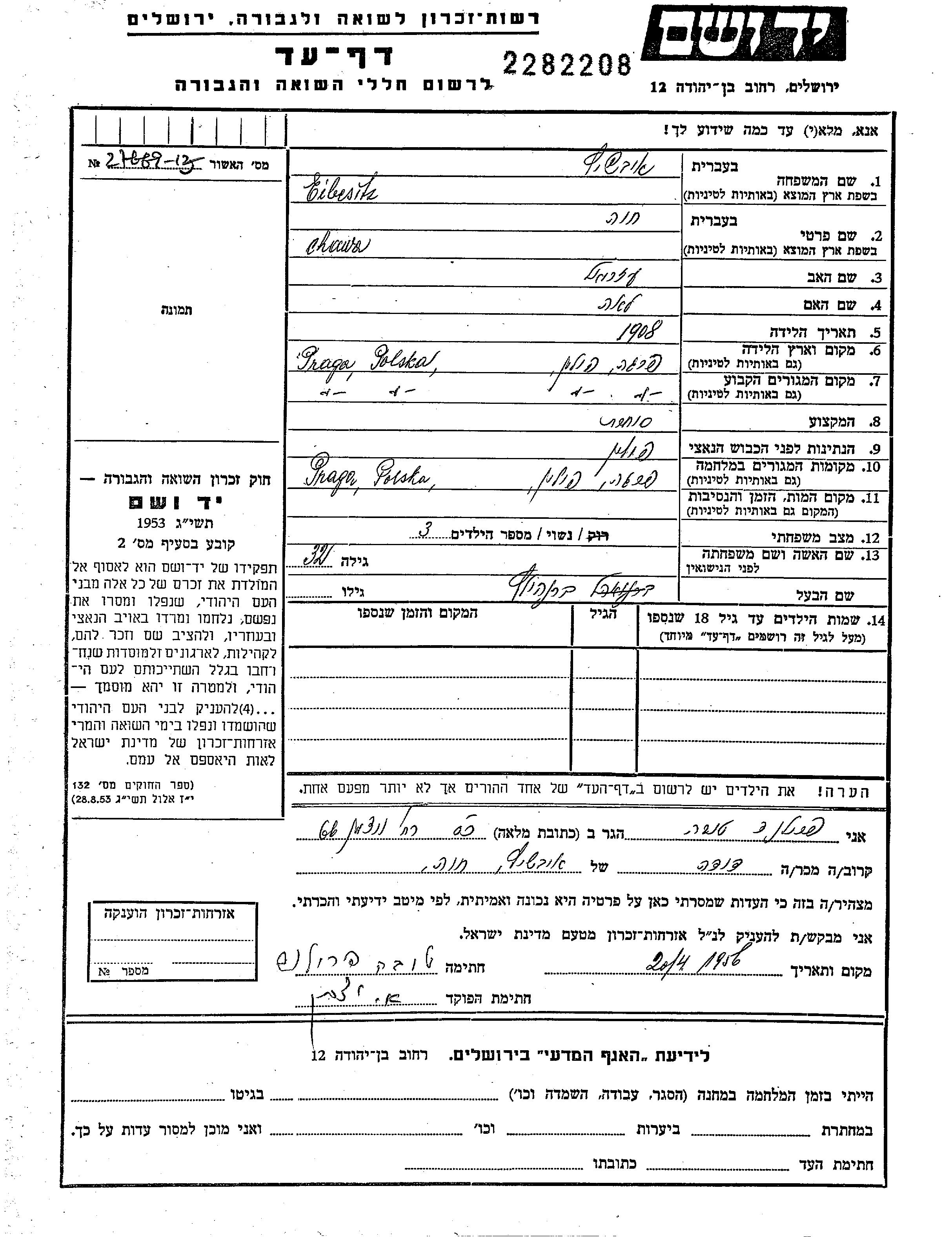 Yad Vashem - Pages of Testimony Names Memorial Collection