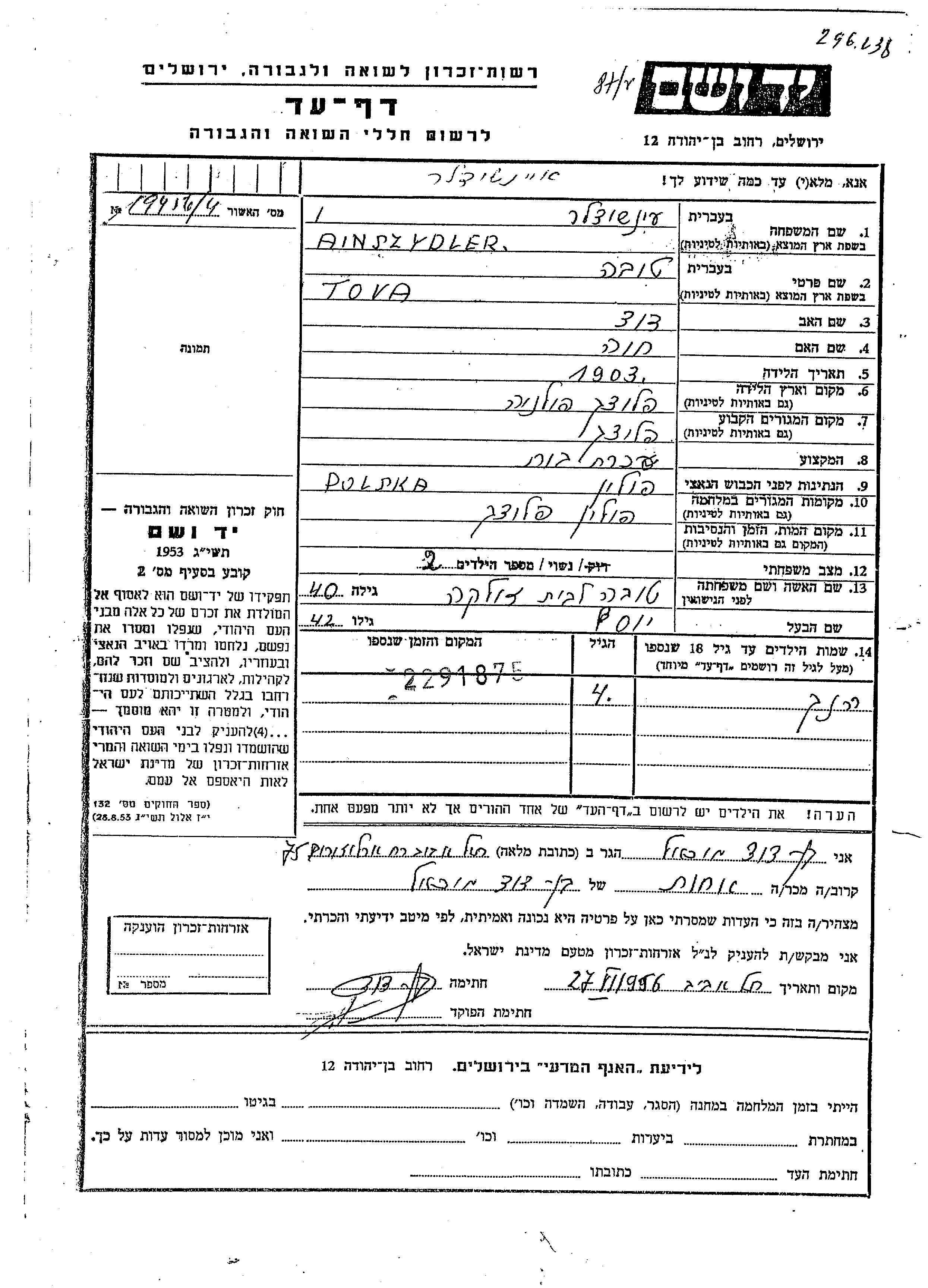 Yad Vashem - Pages of Testimony Names Memorial Collection